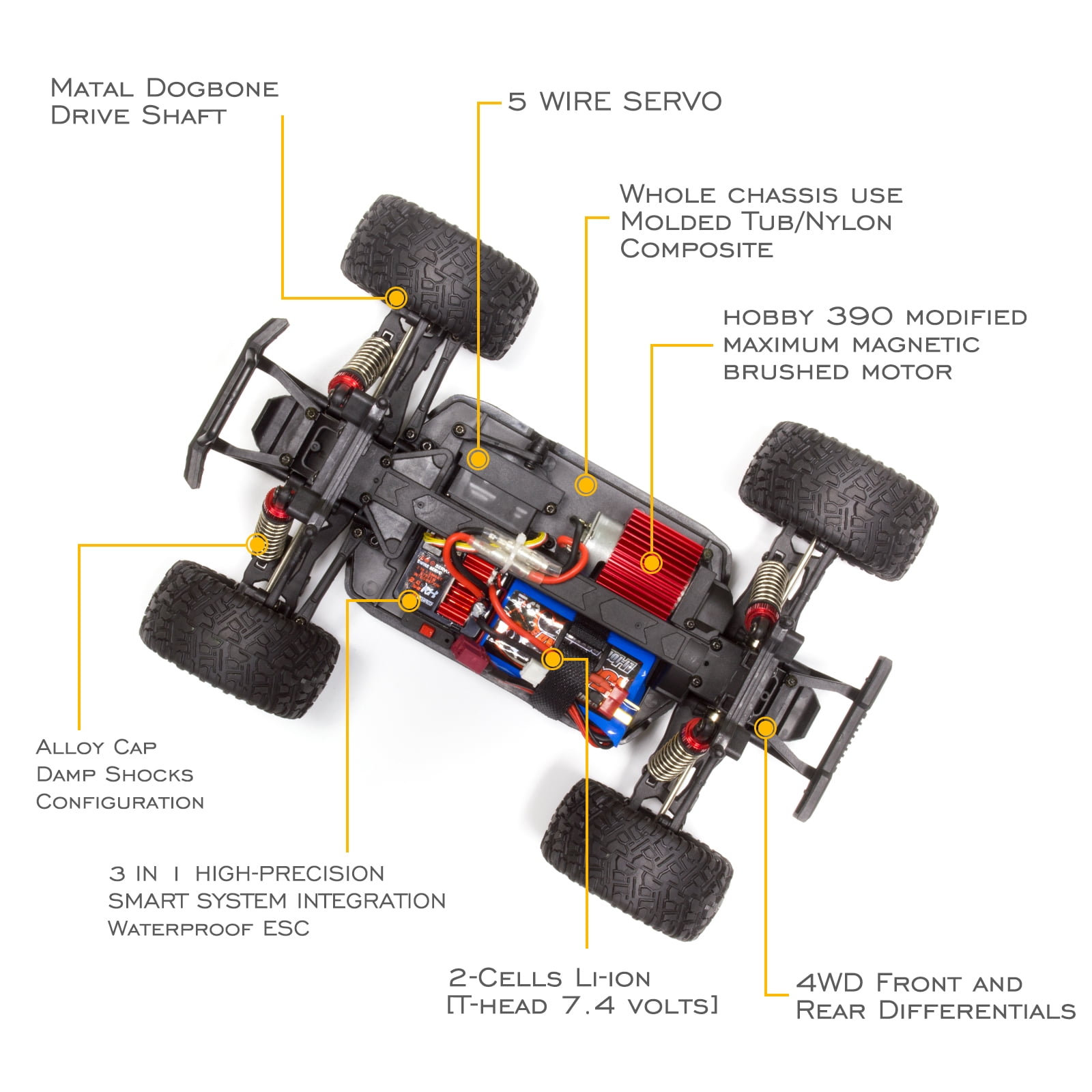 The whole car made of high-performance composite nylon plastic materials Model dedicated high-speed rolling bearings Model dedicated 390 high-speed magnetic motor Waterproof, fast response, high-power model electronic governor with brush (using lithium battery) Advanced high capacity large ratio discharge, the model dedicated 7.4V 1500mAh lithium battery Model dedicated 2.4G remote control with waterproof receiver High torque server Specifications: Brand: REMO Item NO.: 1631 Scale: 1/16 Color: Red, Blue Max Speed: About 50km/h Frequency: 2.4GHz Operating Mode: AFHDS Modulation: GFSK Battery For Transmitter: (NOT INCLUDED) 4pcs AA batteries (NOT INCLUDED) Motor: 390 Brushed Motor ESC/Receiver: Waterproof (Rating: IP68); 3CH; 27.2 x 17.6 x 11.4m Servo: 5-wire Servo Battery For Car: (INCLUDED) 7.4V/1500MAH Li-ion Battery (2 cells;T-plug) Remote control time: 25 minutes Charging time: 120 minutes Remote distance: 80 meters Speed: 40KM/h Function: forward, backward, turn left, rear turn, high speed car, waterproof; Forward and backward ratio adjustable, anti-stuck protection Remote control: left and right hand switch Package includes: 1 x RC Truck 1 x Transmitter 1 x English Manual 1 x Charger 1 x 7.4V Battery