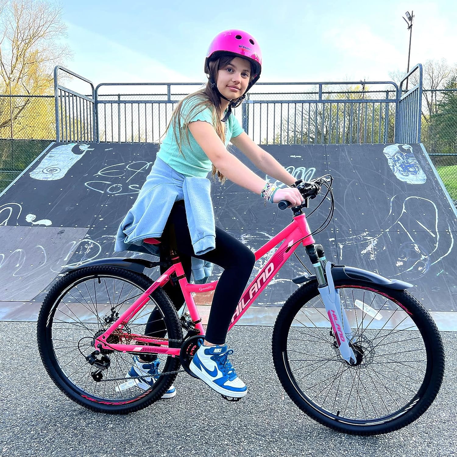 【Sturdy Frame&Internal Cable】Hiland mountain bike with high carbon steel frame that has good durability, it is strong and shock resistant. Meanwhile the carbon steel is relatively easy and safe to handle. The bike with internal cable routing makes it looks slick, it’s more aerodynamic than external routing at high-speed. 【21-Speed SHIMANO Gearing】SHIMANO 21-speed derailleurs ensure total control and it can be adapted to various roads, such as forestroad, gravel, grass, mountain road. 【Designed for Youth&Women】The frame design is simpler to maintain and greater for teenagers and women, the low and smooth frame makes the riding easier. Double wall aluminum tires ensure safety when you ride faster in the city or on terrain, and be more efficient when pedaling. 【Assembly Guide】 Hiland mountain bike is 85% pre-assembled and easy to assemble within 25 minutes. The delivery box include free installation tools, pedals and kickstand. 【Size Guide & Warrenty】This is suitable for person 5’3- 6′ tall and over 12 years old. Like every Hiland, it’s backed by a limited lifetime warranty. So if you have any question about bike, Please do not hesitate to contact us.