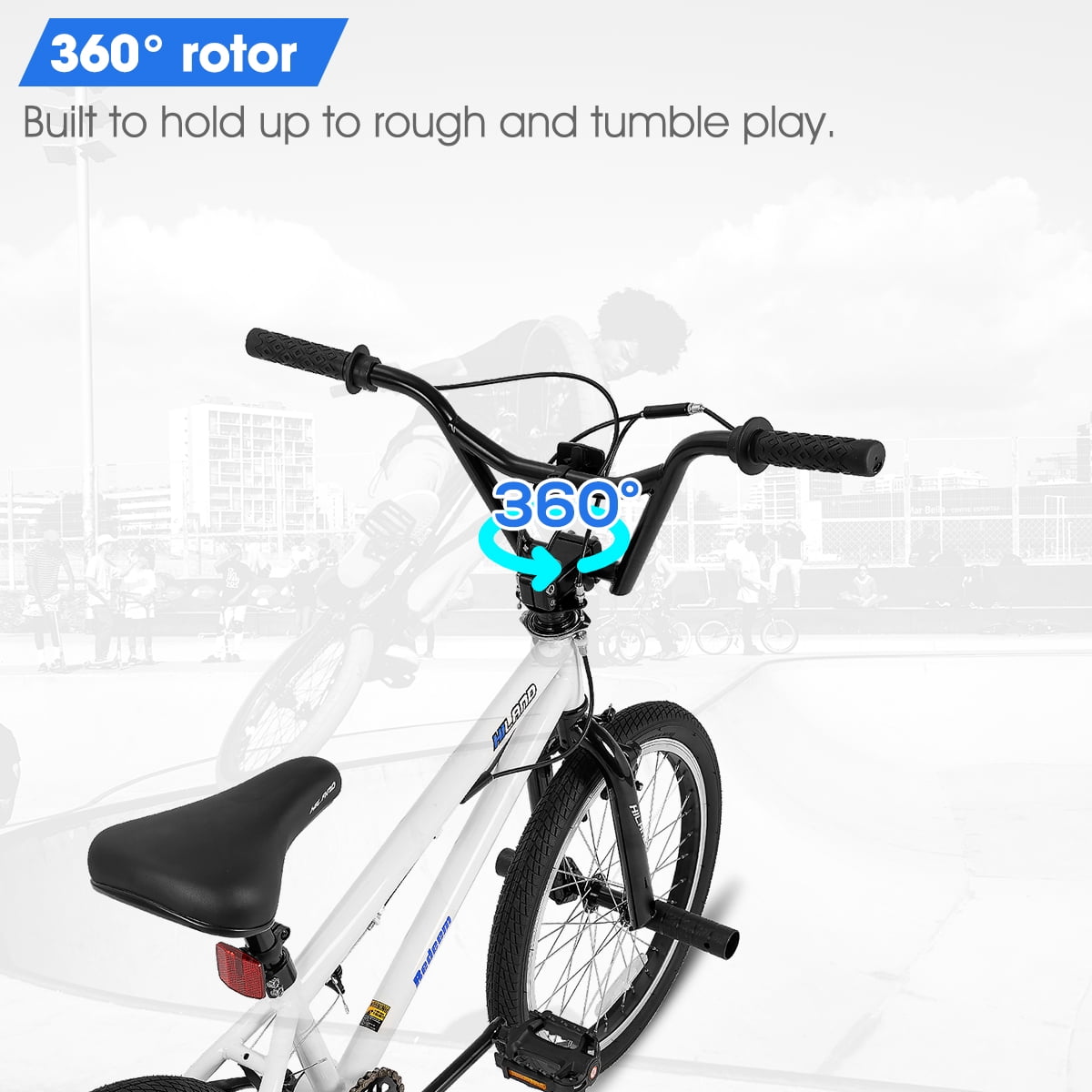 Hiland Hi-Ten Freestyle steel frame,32x14T gearing make it easy to ride. A 360 rotor that allows you to turn the handlebar completely, plus with 4 pegs make the bike more entertaining. 20.5 inch horizontal top tube length,ideal for Boy/Girl/ Teenager Height 4.4′-5.4′. For kids over 4 years old.