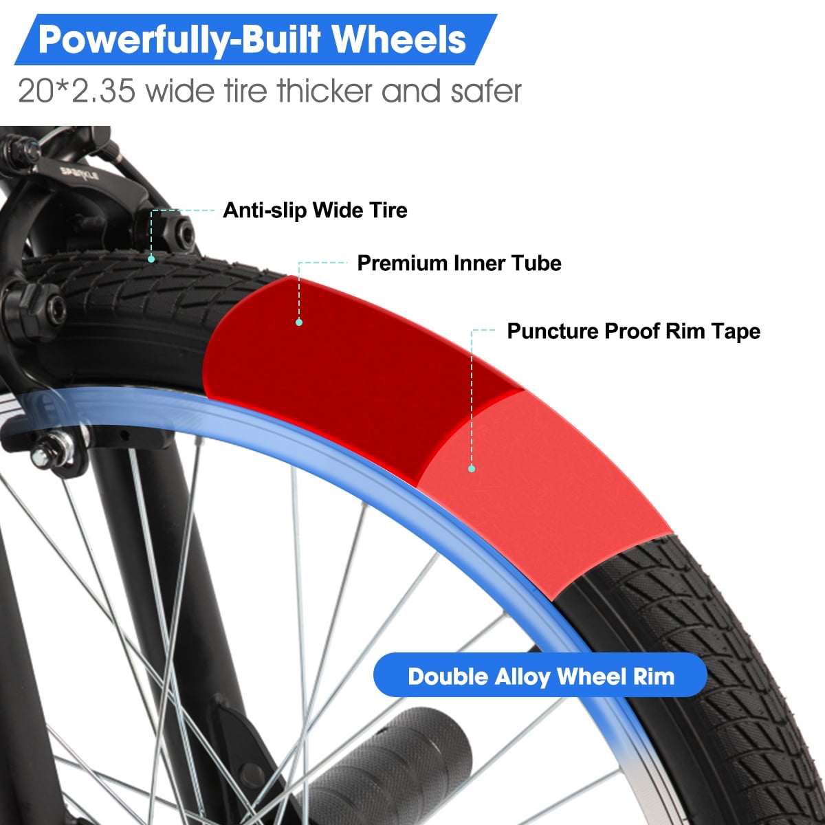 【Hi-Ten Steel Frame】 Hiland Hi-Ten freestyle steel frame, rugged frames and components, provides a long service life. From tricks and flips to shredding dirt, our collection of BMX bikes for kids is ready to rip. 【360 ° Rotor】 The handlebar and fork are joined by a steam. And a 360 ° rotor that allows you to turn the handlebar completely which makes the riding more entertaining. 【BMX Brake】 Consist of professional BMX U-brake system, double U-brakes is safer when your kids are doing 360 degree performance of spin. 【Wide Tire】 The wheel features 20*2.35 wide tires which is thicker and more robust than other kid’s bikes, it increases safety. The BMX tyres has a great grip even on some uneven roads. 【Assembly &Warranty】 85% pre-assembled, assembly tools included, like every Hiland, it’s backed by a limited lifetime warranty. Ideal for Boy/Girl/ Teenager age 7-13 years. Height 48’’-60’’
