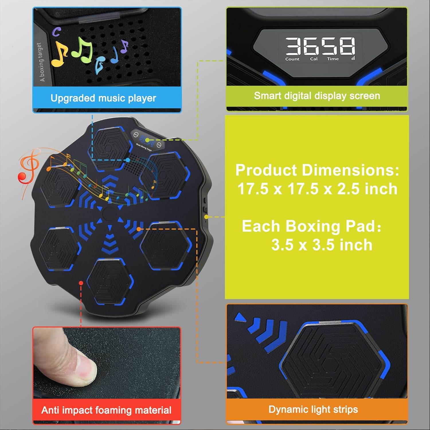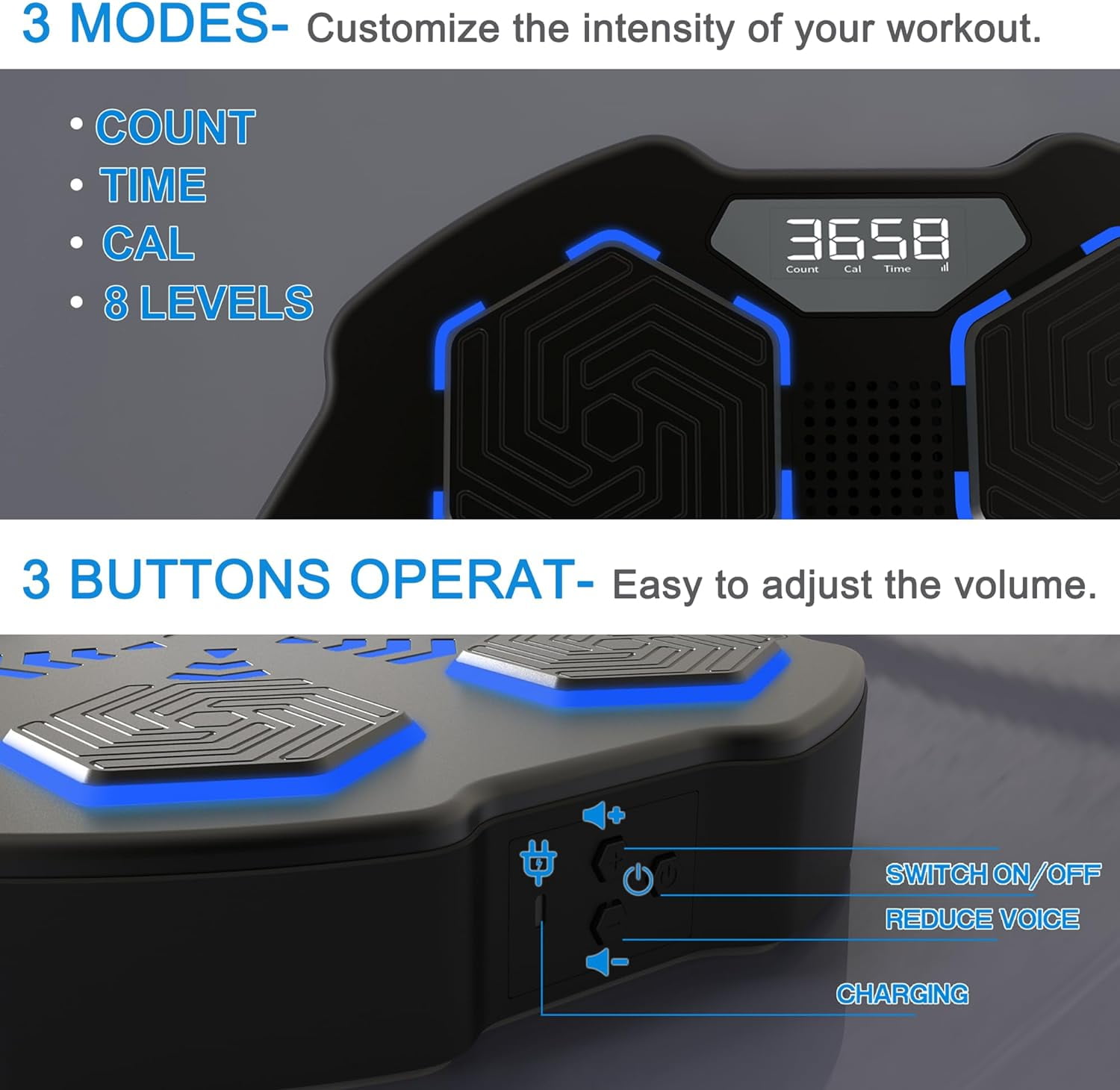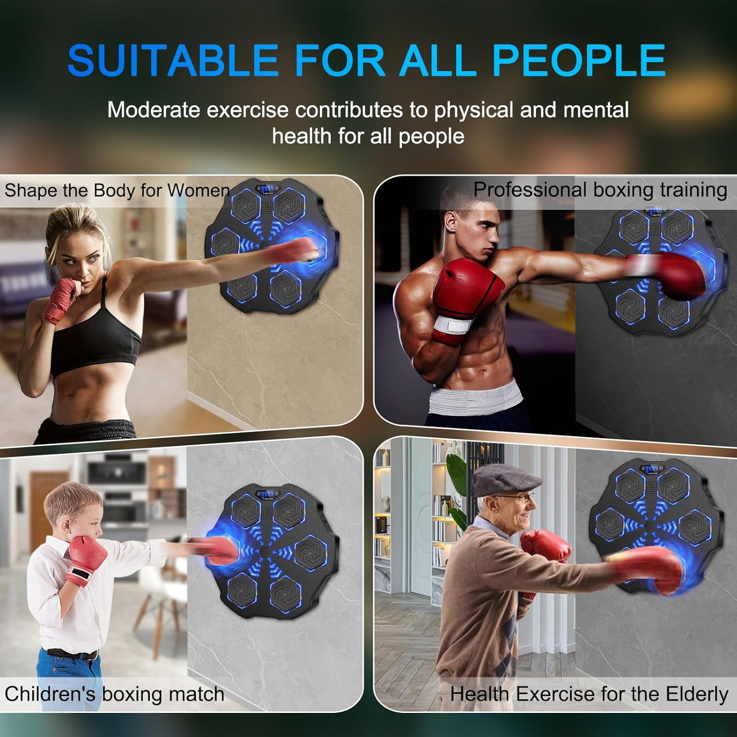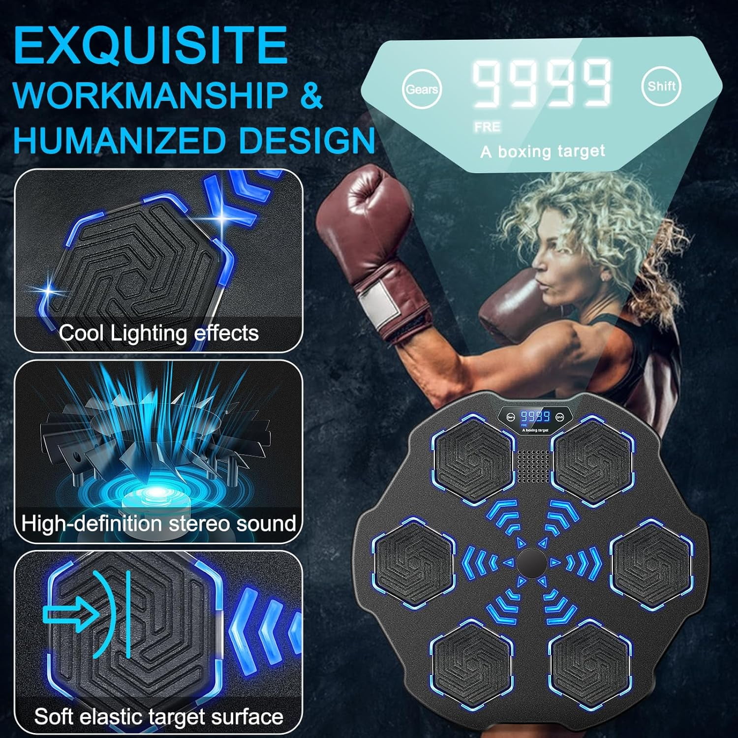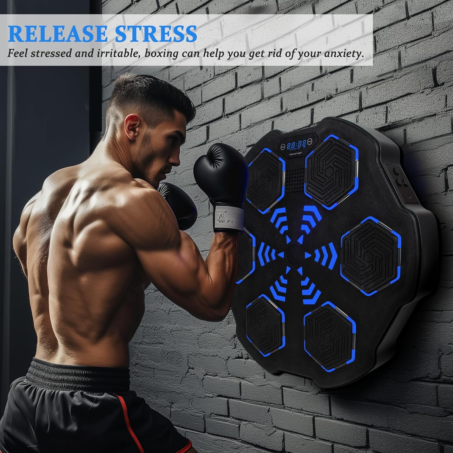 Digital Boxing Machine: Unleash your fitness fun with our smart boxing machine, merging music and exercise seamlessly. Revamp your fitness routine with our LED punch experience! Sync the music to your phone via bluetooth for a dynamic visual rush. Durability and Safety: Our wall-mounted boxing machine is crafted with EPS, which provides sturdy comfort during vigorous workouts. Larger soft striking pads prevent injuries during your workout! Easy Wall Installation: Our versatile smart music boxing machine offers flexibility to place around with its effortless wall mount option. Suitable for varied walls, and we provide you with 3 mounting methods, you can choose the right one according to your needs. Easy Wall Installation: Our versatile smart music boxing machine offers flexibility to place around with its effortless wall mount option. Suitable for varied walls, and we provide you with 3 mounting methods, you can choose the right one according to your needs. Great Gift Option: Searching for unique yet mindful present. Our music boxing machine provides endless amusement and fitness. Give the thrill of laughter, activity – perfect for your loved ones,family, buddies, and kids. 2024 New Music Boxing Machine, Upgraded Smart Bluetooth Music Boxing Parent-Child Games, Wall-Mounted Exercise Equipment for Home Exercise New Fitness(with Boxing Gloves) Smart Electronic Music Boxing Machine, Wall Mounted Boxing Machine Training Punching, Smart Boxing Target Workout Machine for Home,Indoor and Gym