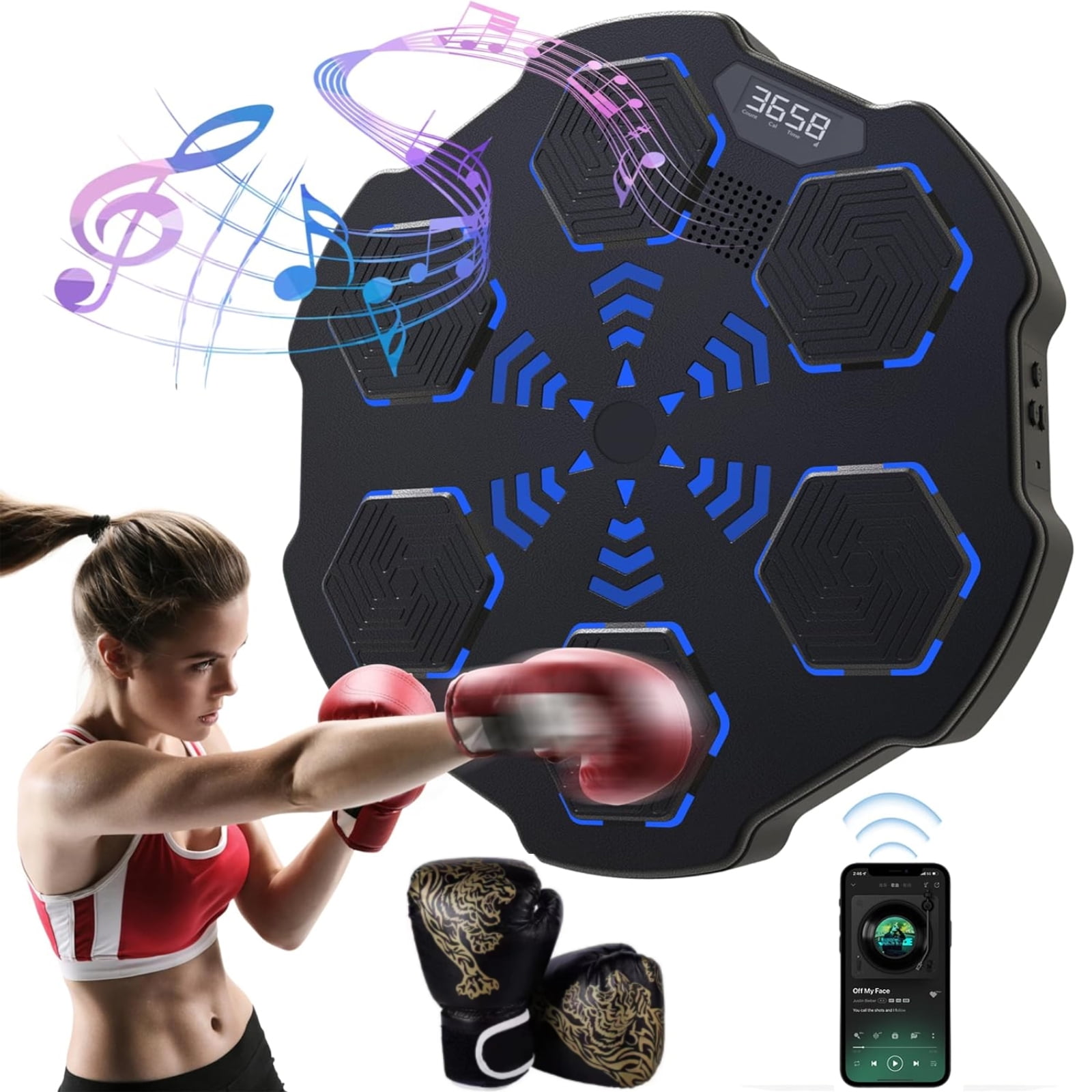Hinzonek 2024 New Music Boxing Machine, Upgraded Smart Bluetooth Music Boxing Parent-Child Games, Wall-Mounted Exercise Equipment for Home Exercise New Fitness(with Boxing Gloves)