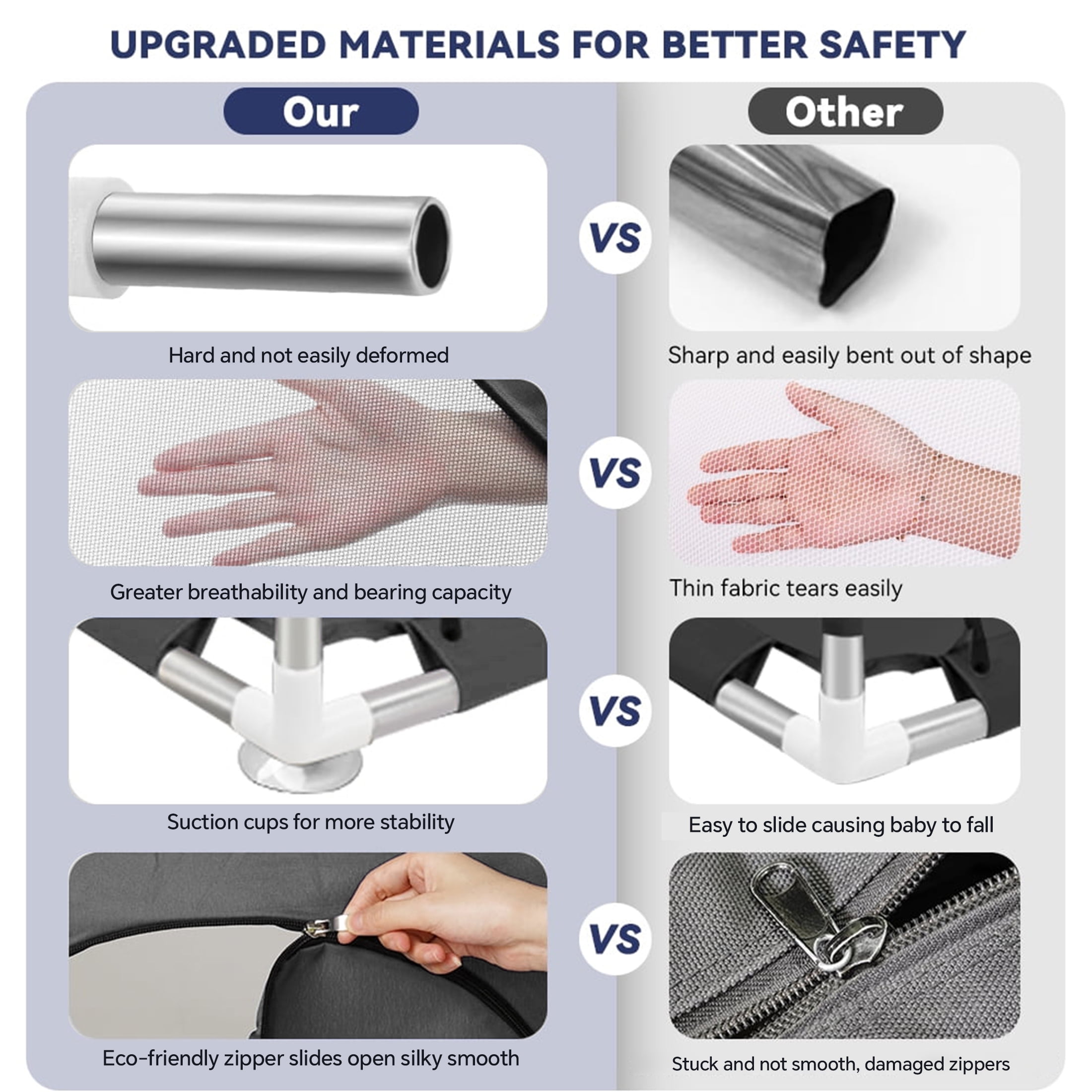 HioHa Large Baby Playpen for unisex and toddlers size is 71.5*46*26 inch (here size is the inner diameter of the Baby Playpen for babies and toddlers), outside size is 90*48*26inch (Including football at both ends), parents can look after them outside it directly while doing housework or chatting, gossiping without worrying about their safety! What a release for Parents! This playpen is designed with breathable and visible mesh. You can observe your baby’s behavior in the play center easily. Good to pay attention to the baby and keep them safe.