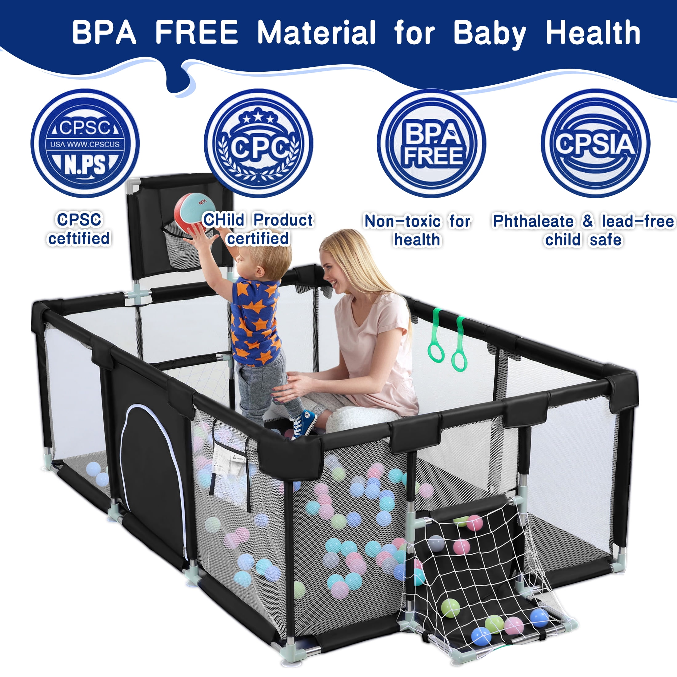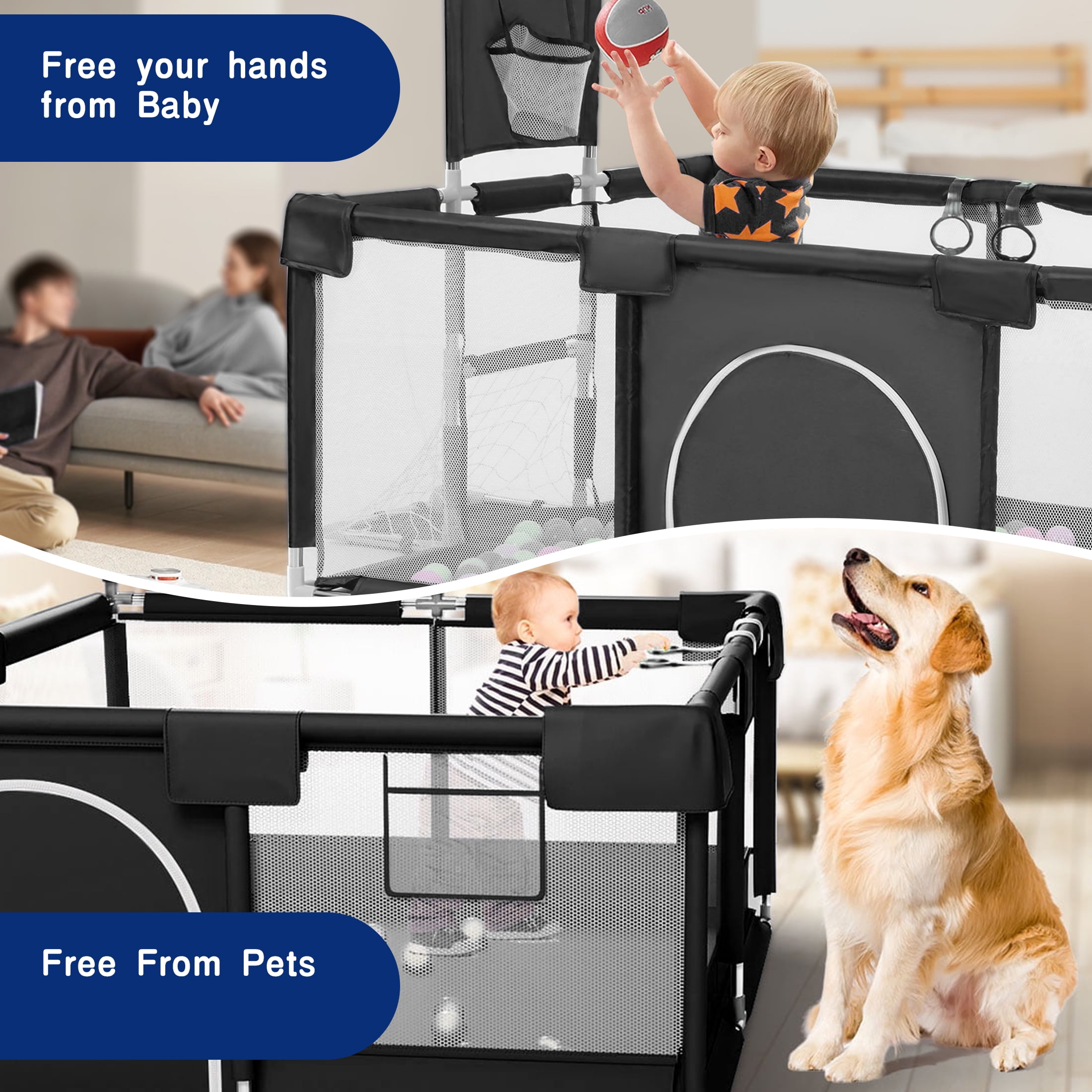 HioHa Large Baby Playpen, Big Playard with Basketball Hoop, Portable Play Yard Baby Fences with Storage Bag for Infant Toddler