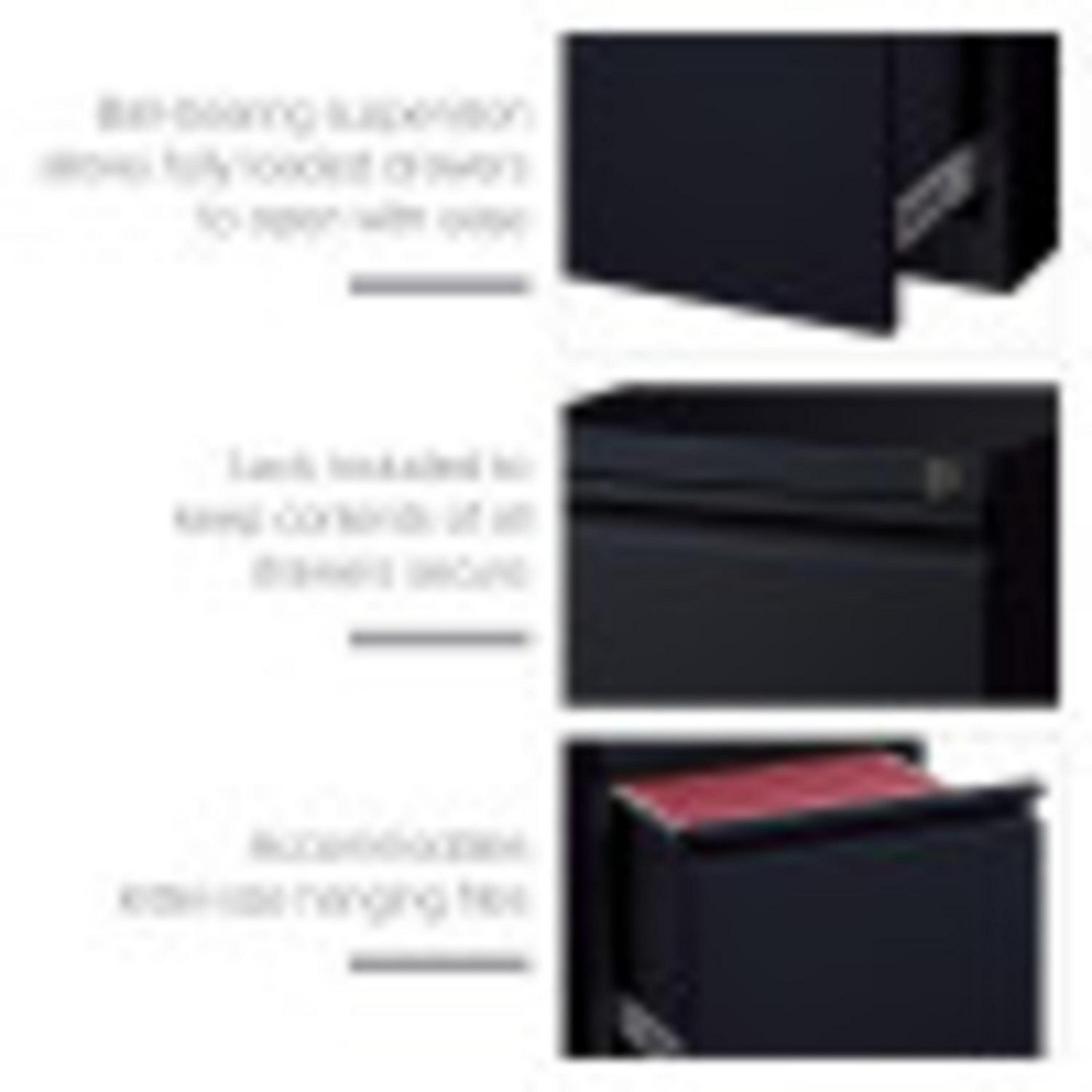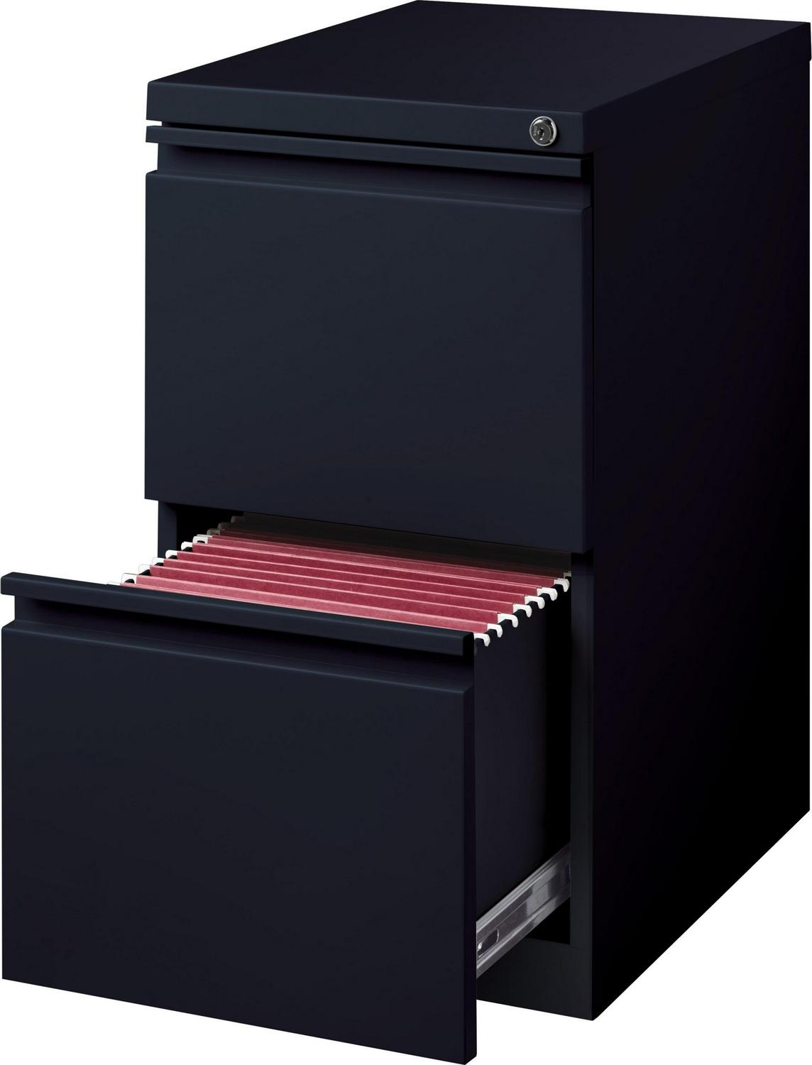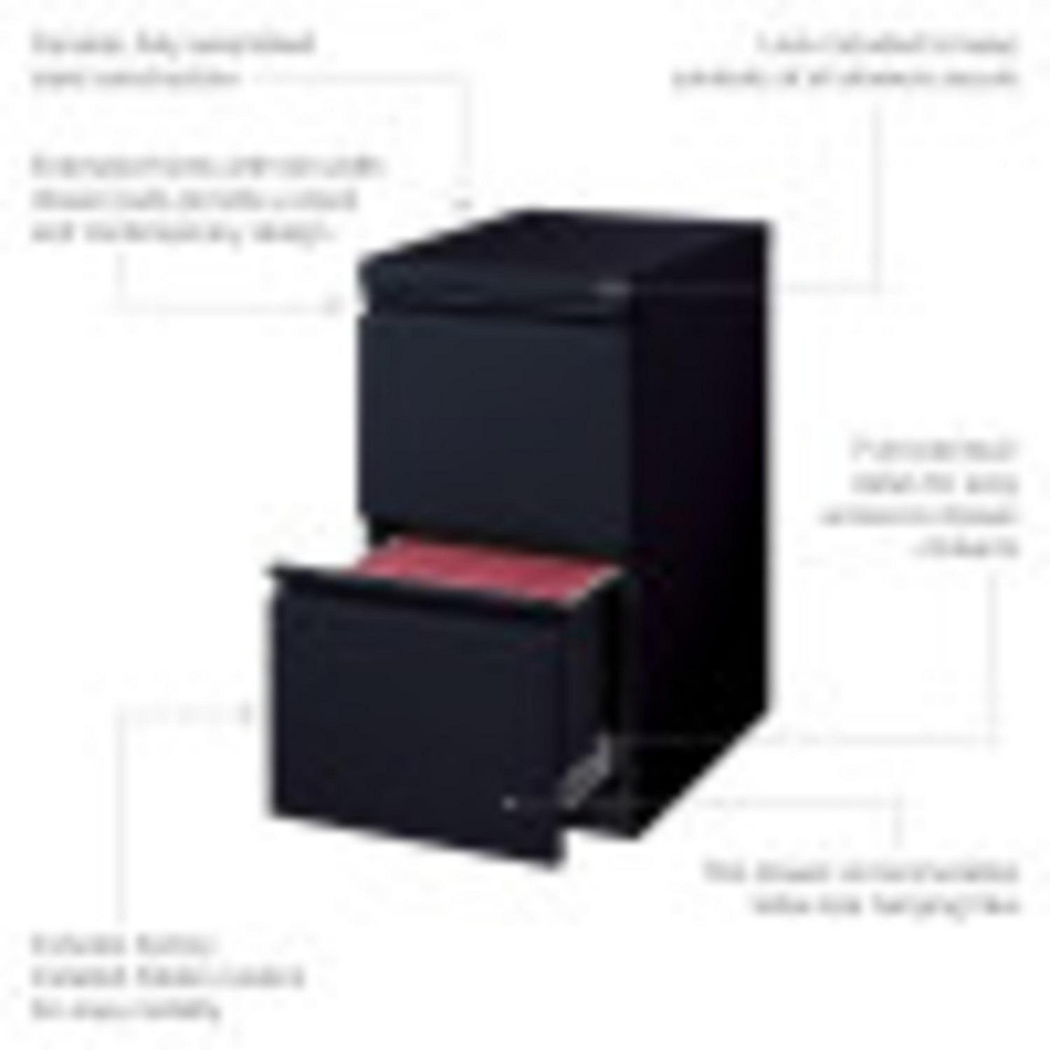 20-inch deep Mobile Pedestal Files with a 2-drawer file-file drawer configuration are designed to support the demand of today’s office. Durable, fully assembled steel construction with non-porous surface is easy to clean. These commercial grade mobile pedestals come standard with factory installed hidden casters, full extension drawers, counterweights, and a core-removable lock for security. File drawers accommodate letter-size hanging files. The ball-bearing suspension ensures a smooth and quiet drawer performance. Extended fronts with full-width drawer pulls provide a sleek and contemporary design. Available in multiple colors to enrich your workspace. 27.75″ height allows these units to roll under most work surfaces. Limited Lifetime Warranty. Unit meets or exceeds ANSI-BIFMA industry standards. Greenguard Gold Certified. Color: Black