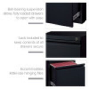 - Hirsh 20″ Deep Mobile Pedestal File Cabinet 2 Drawer File-File, Letter Width, Black