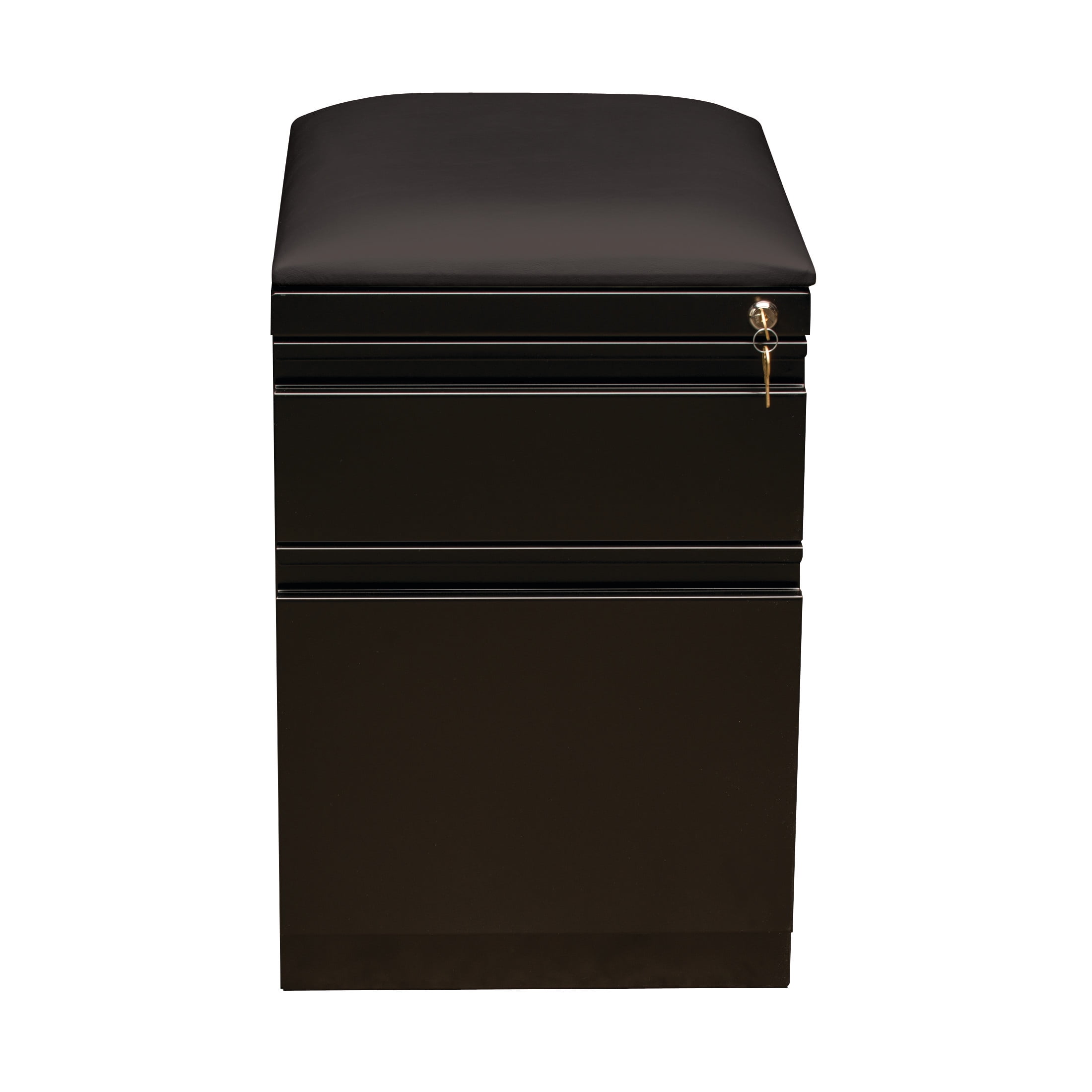Commercial grade ball-bearing suspension allows fully loaded drawers to open with ease Durable, fully assembled steel construction with non-porous surface is easy to clean Includes easy to clean faux leather seat cushion Includes factory installed hidden casters for easy mobility Lock included to keep contents of all drawers secure Full-extension slides for easy access to drawer contents Includes counterweight to inhibit tip over Accommodates letter-size hanging files Full width J-pull handles Box-File drawer configuration Limited Lifetime Warranty Meets or exceeds ANSI-BIFMA standards Greenguard Gold Certified Hirsh 20 inch Deep Letter Width Mobile Pedestal File Cabinet 2 Drawer Box-File with Seat Cushion, for Home and Office, Black / Black
