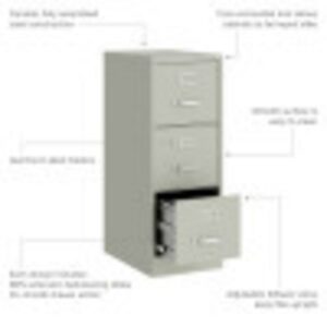 – Hirsh 22″ Deep 3 Drawer Letter Width Vertical File Cabinet, Commercial Grade, Light Gray
