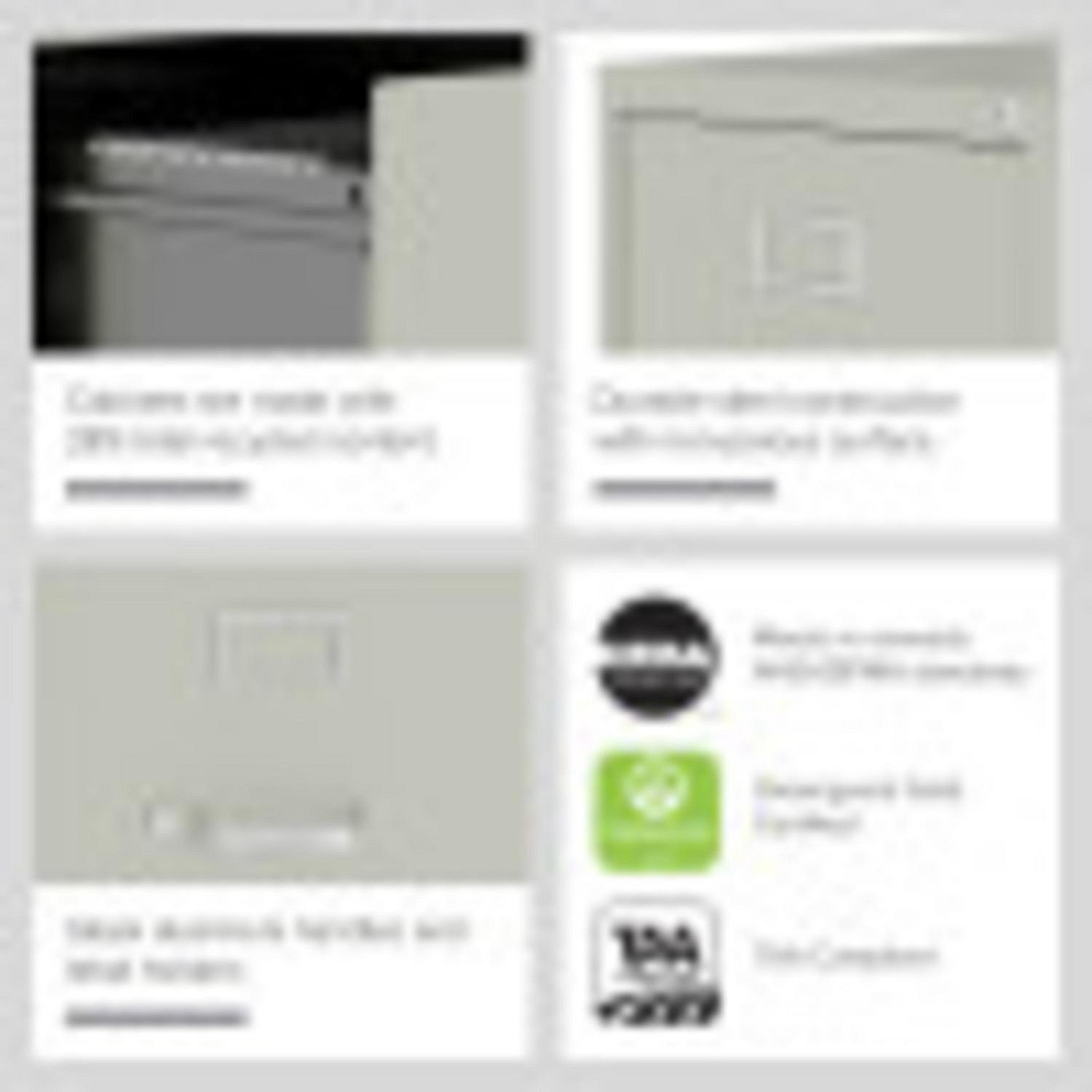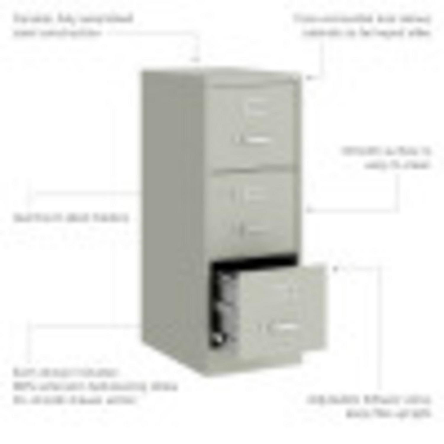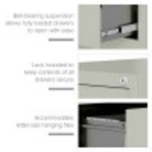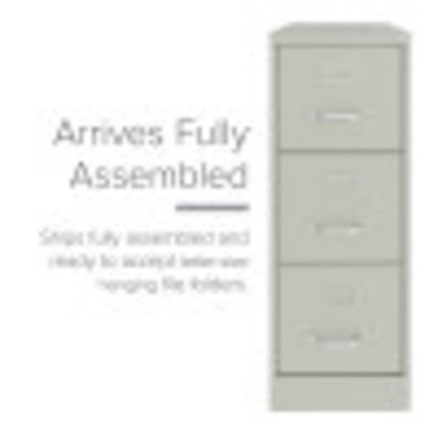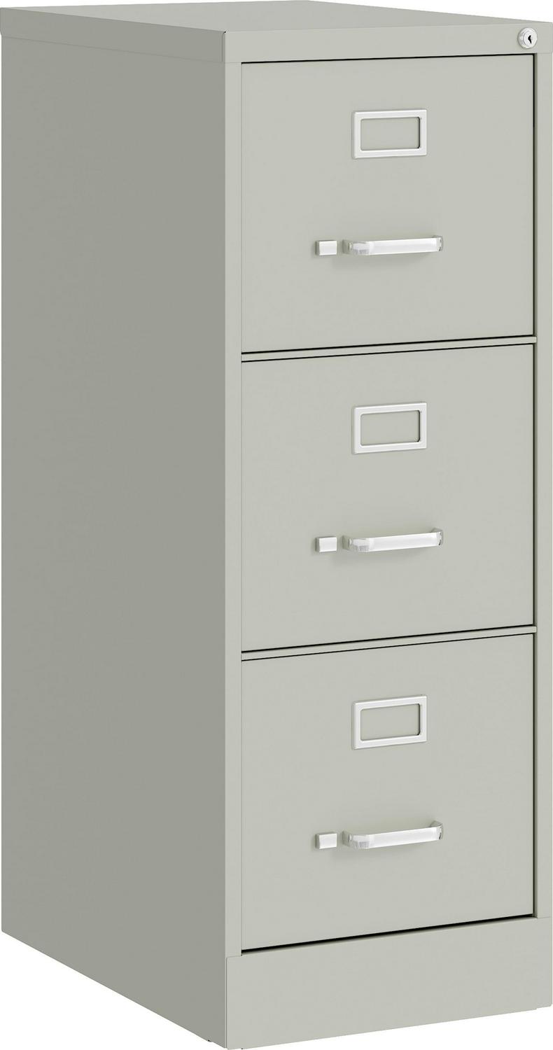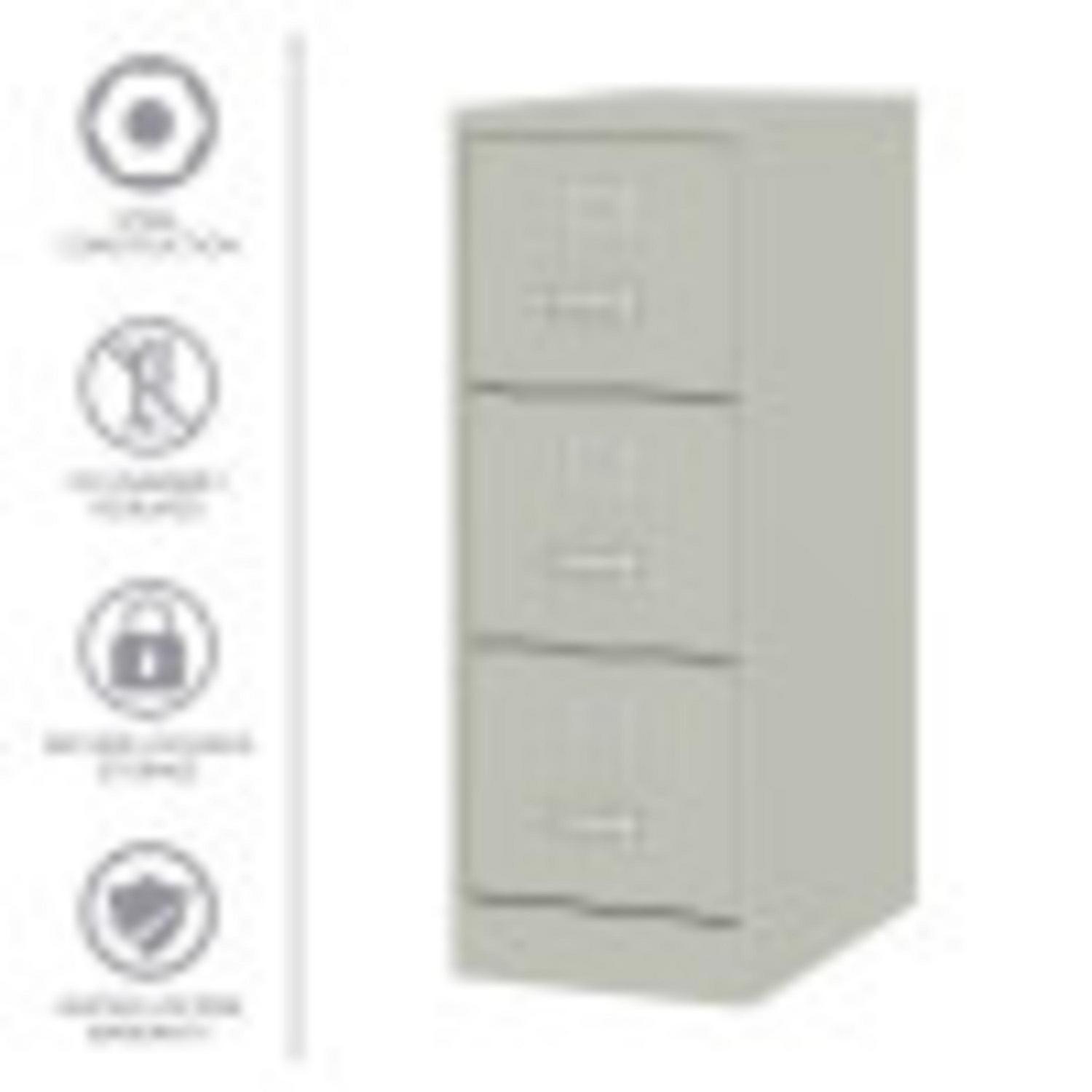 This Three Drawer Metal File Cabinet features letter width drawers that are the perfect storage solution for professional offices or large home offices. This cabinet highlight a classic design and feature durable steel construction that can stand up to heavy-duty use. This filing cabinet ships fully assembled and is ready to accept letter width hanging file folders. The durable painted surface is smooth and easy to clean. Each drawer includes 80% extension commercial grade ball-bearing slides for smooth drawer action. Even fully loaded, these drawers open with ease. Adjustable follower wires keep files upright and organized. The included core-removable cabinet lock allows cabinets to be keyed alike. These cabinets are designed to meet or exceed ANSI-BIFMA industry standards for performance and workmanship. Our cabinets are made with 27% recycled content and are backed by a limited lifetime warranty. Color: Light Gray