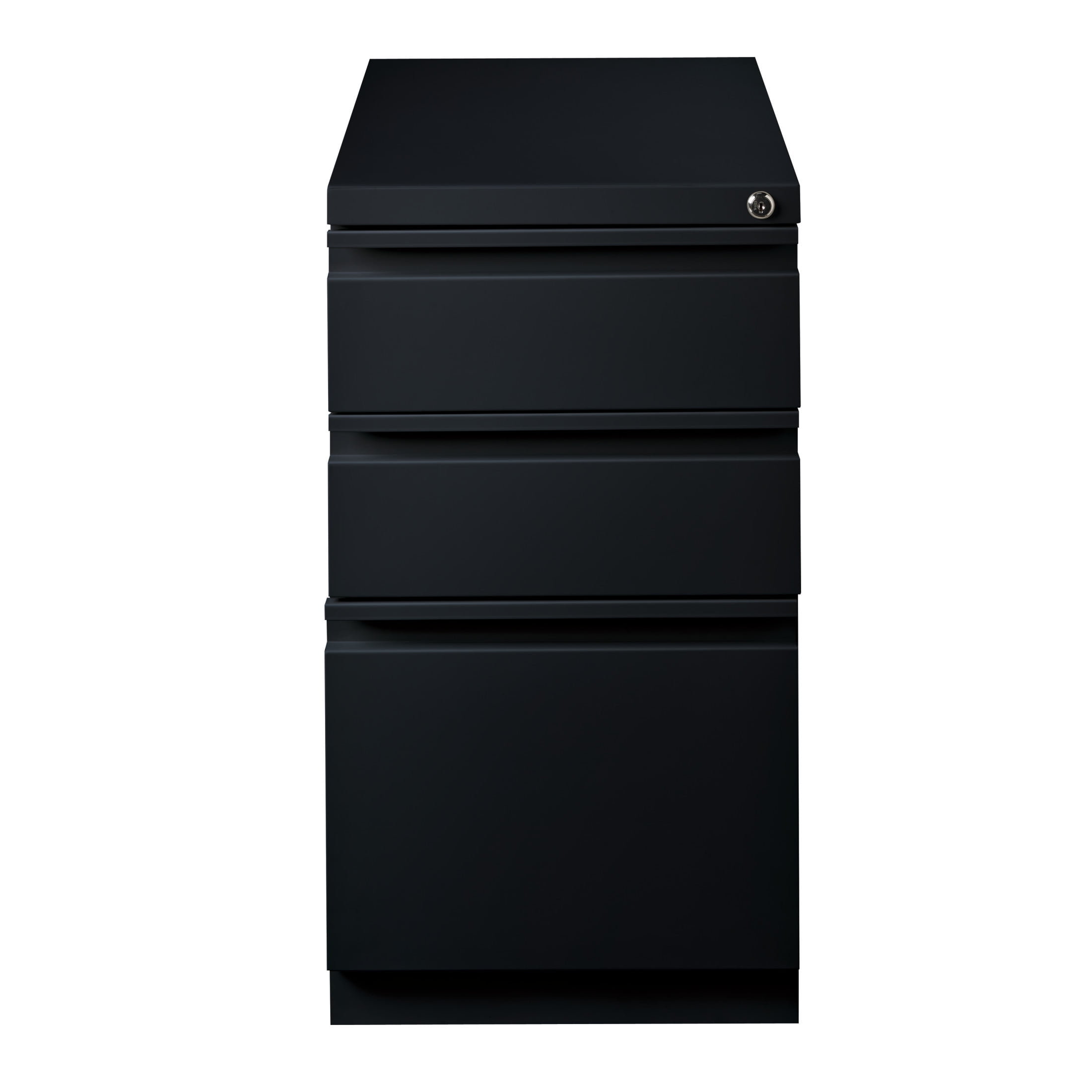 23-inch deep metal Mobile Pedestal Files with a 3-drawer box/box/file drawer configuration in black are designed to support the demand of today’s office. Durable, fully assembled steel construction with non-porous surface is easy to clean and sanitize. These commercial grade mobile pedestals come standard with factory installed hidden casters, full extension drawers, counterweights, and a core-removable lock for security. The file drawer accommodates letter-size hanging files. The ball-bearing suspension ensures a smooth and quiet drawer performance. Extended fronts with full-width drawer pulls provide a sleek and contemporary design. Available in multiple colors to enrich your workspace. 27.75″ height allows these units to roll under most work surfaces. Limited Lifetime Warranty. Unit meets or exceeds ANSI/BIFMA industry standards. Greenguard Gold Certified. Features: Commercial grade ball-bearing suspension allows fully loaded drawers to open with ease Drawer Configuration: Box, Box, File Hidden casters provide a clean, integrated appearance Lock included to keep contents of all drawers secure Accommodates letter-size hanging files Full width J-pull handles Box/Box/File drawer configuration Limited Lifetime Warranty Meets or exceeds ANSI/BIFMA standards Greenguard Gold Certified Specifications: Product Dimensions: 27.75″ H X 15.00″ W X 22.88″ D Product Weight: 77 Assembly Required: No Assembly details: Pre-Assembled; To ensure the key for this product does not get loose, slide the thumb latch on left side of handle to the right, at the same time, pull the drawer open. Keys are hanging inside the cabinet by the locking mechanism. Product Color: Black