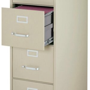 - Hirsh 26.5″ Deep 4 Drawer Letter Width Vertical File Cabinet, Commercial Grade, Putty