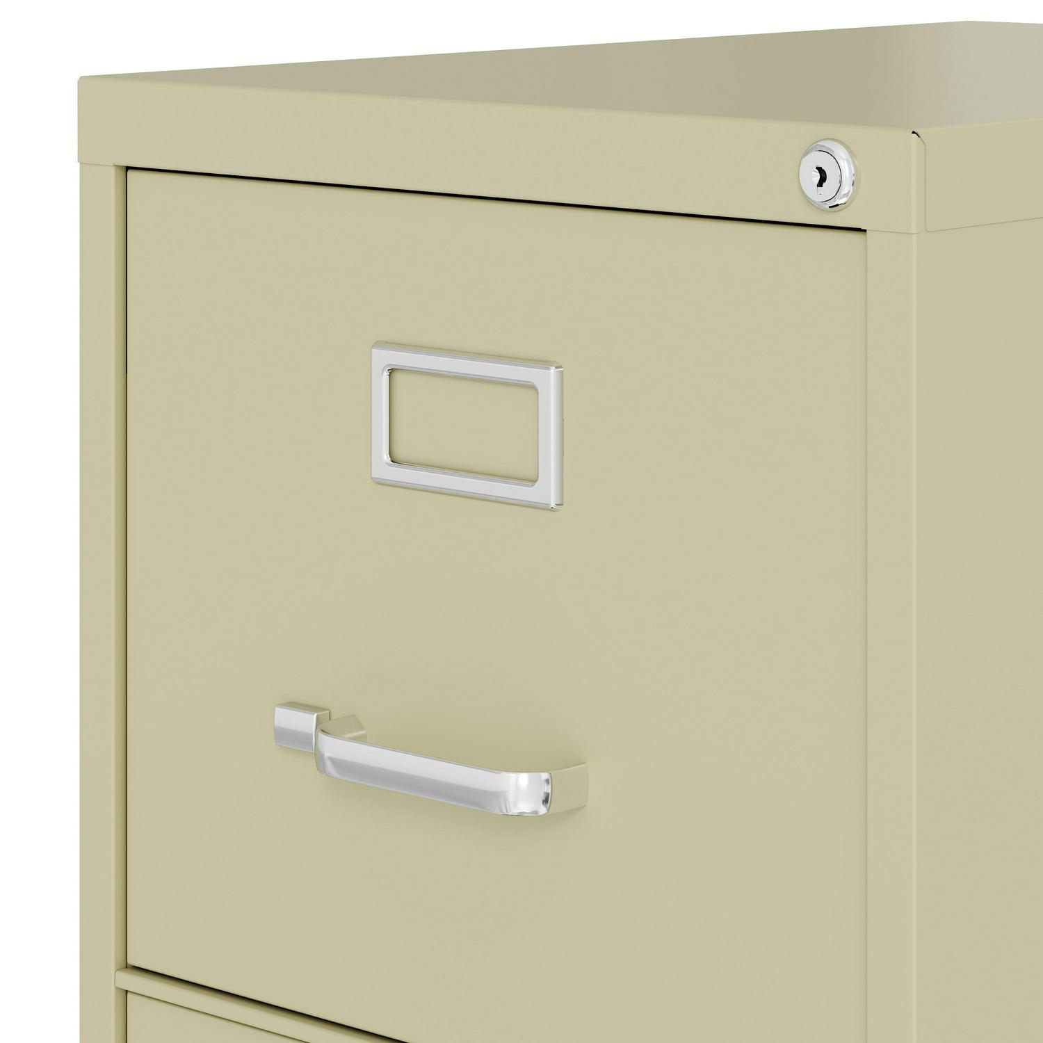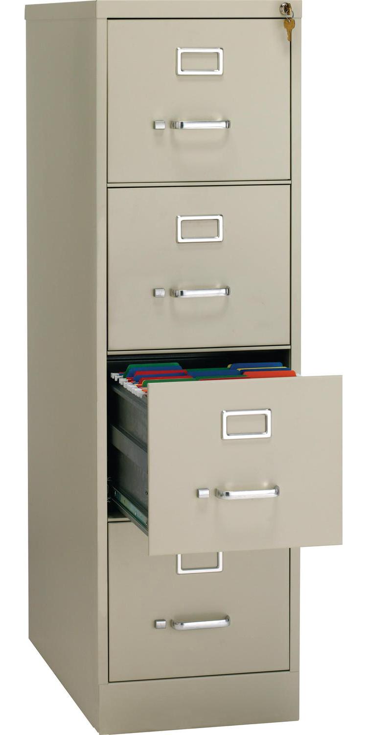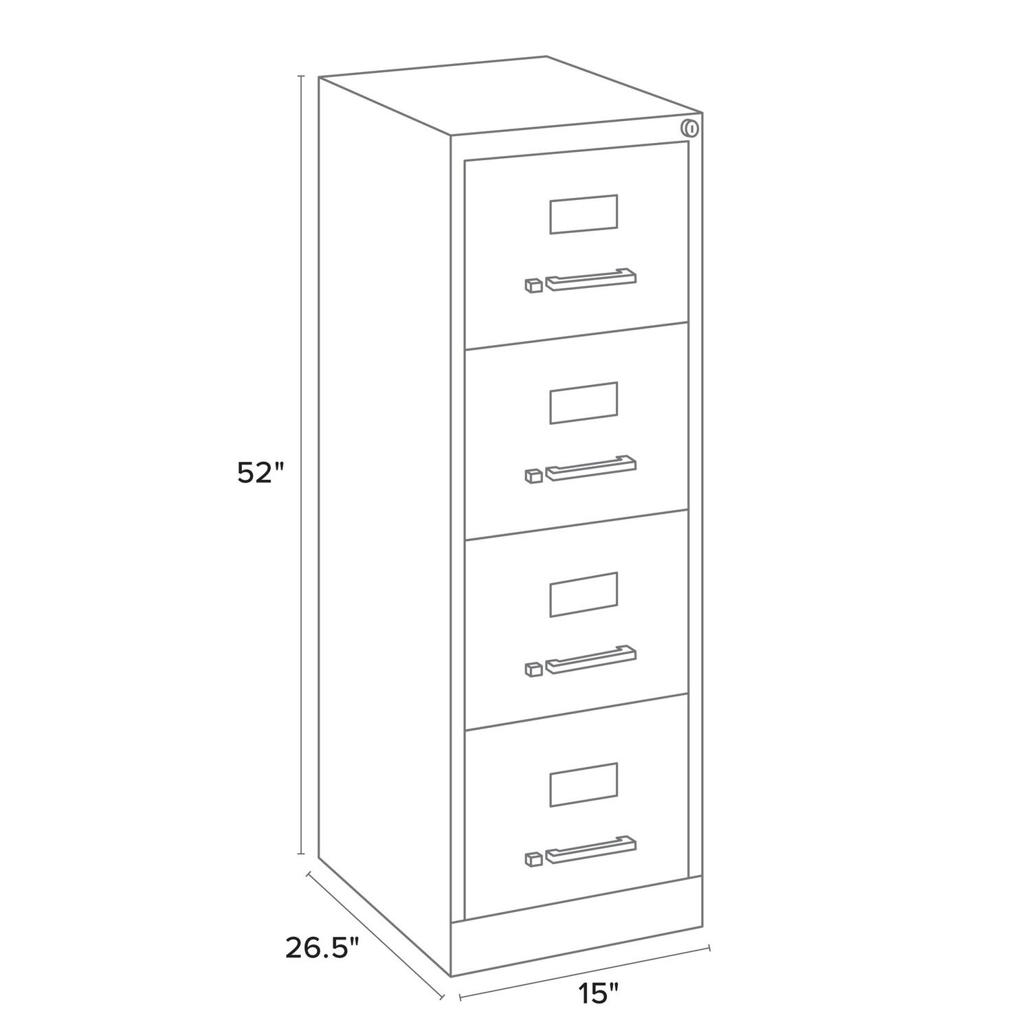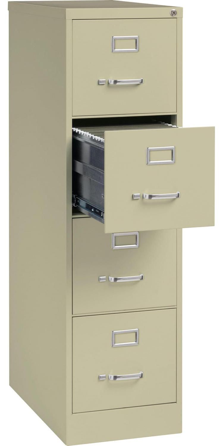 26.5″ deep metal, 4 drawer, letter width, commercial grade vertical file cabinets are perfect for business, educational, or personal offices. These cabinets feature a classic design and are constructed with high quality durable materials that are suitable for heavy-duty use. Ships fully assembled and is ready to accept letter width hanging file folders. Smooth surface is easy to clean. Each drawer includes full extension ball-bearing slides for smooth drawer action. Even fully loaded, these drawers open with ease. Adjustable follower blocks keep files upright. The included core-removable lock allows cabinets to be keyed alike. Designed to meet or exceed ANSI-BIFMA industry standards for performance and workmanship. Made with 28% total recycled content. Backed by a Limited Lifetime Warranty. Color: Putty