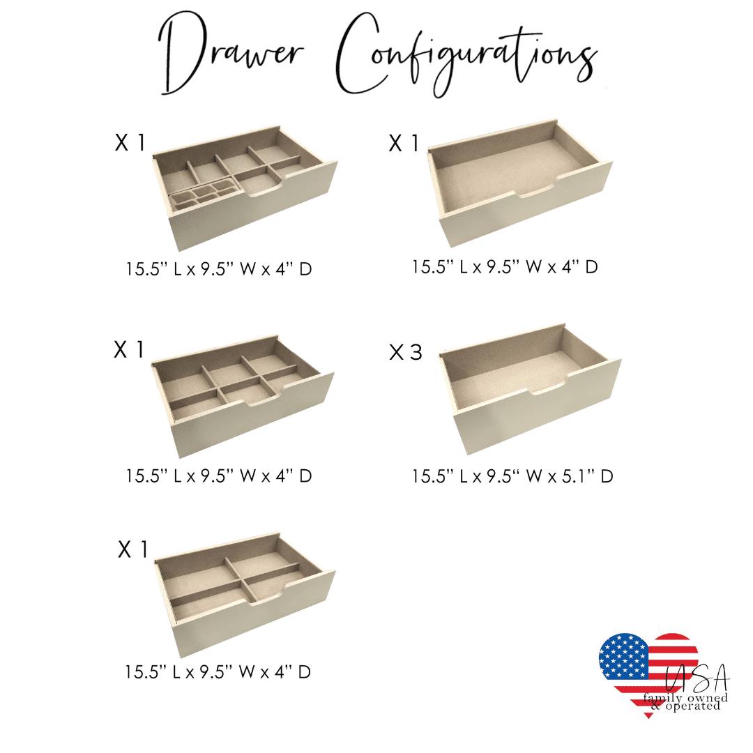 The Chelsea Jewelry Armoire is the perfect, transitional-styled storage cabinet to house your entire jewelry collection. The beautiful, mirrored front doors paired with the sleek metal hardware offset the rustic, taupe mist finish of this jewelry armoire, making the Chelsea versatile and timeless. The two front doors open to reveal 8, double-tiered jewelry hooks, designed to keep your necklaces neatly tucked away and tangle-free. 7 spacious drawers are all lined with anti-tarnish felt to protect and maintain the integrity of whatever jewelry items are housed within. Within these drawers, you’ll find a variety of storage configurations from divided compartments to open storage space, you are sure to discover the perfect home for each bracelet, bauble, and more. Lift the lid, and you will see a vanity mirror, ring rolls, additional compartments, and a cord management hole, allowing you to charge your devices while keeping charging cables neatly hidden away. After you have found the perfect accessories to complete your look, simply close the double doors and your entire collection will be beautifully out of sight.