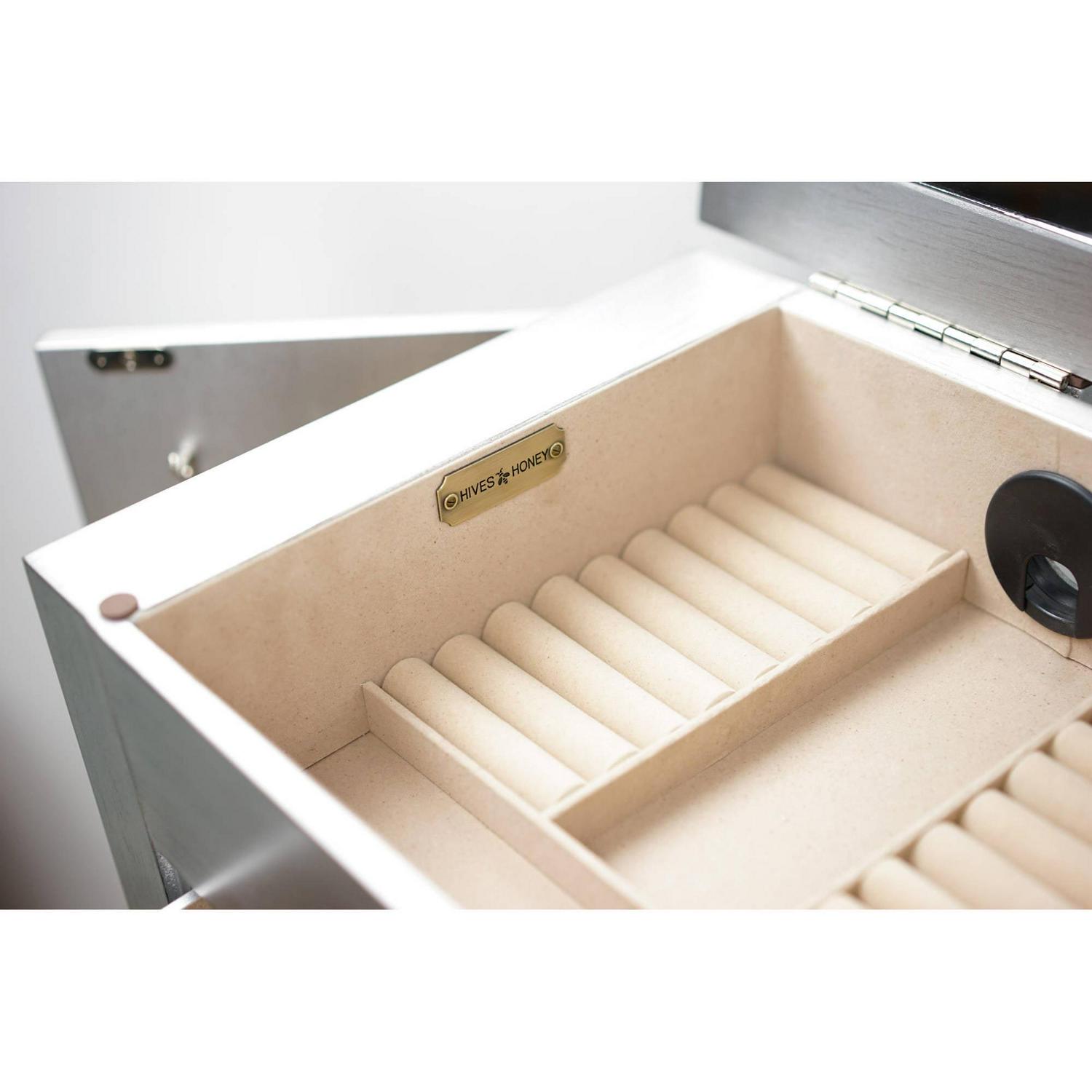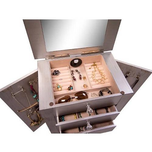 - Features: Necklace Hooks, Ring Holder, Mirror