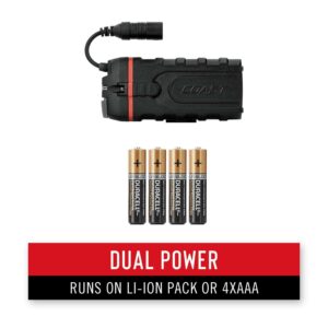 - Rechargeable: pair with the included Lithium-Ion battery or swap in 4 x AA alkaline batteries