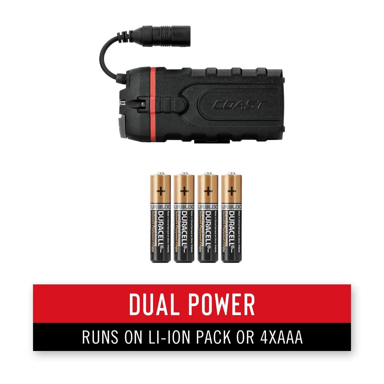 features and benefits:800 lumens702 ft beam distanceli-ion pack or 4 x aa batteries (included)pure beam focusing systembacked by coasts lifetime warrantythe hl8r has all of the great features of the hl8 but adds a separate, rechargeable battery pack and higher output.The rechargeable pack can be charged on or off the headlamp using a micro usb.Users also possess the ability to switch to the alkaline battery pack with ease.Equipped with our pure beam focusing system and twist focus technology, you can quickly shift from an ultra wide flood to a long reaching spot with transition halo for full viewing even in spot mode.It has high output, medium output, and low output modes easily controllable with the light control dial on the side of the front making it adaptable for all sorts of needs regarding brightness and run time.with coasts commitment to quality, the hl8r headlamp is impact resistant, weather resistant and its led is virtually unbreakable.The hl8r headlamp is backed by coasts lifetime warranty against defects in materials and workmanship.Tested and rated to ansi/fl1 standards.