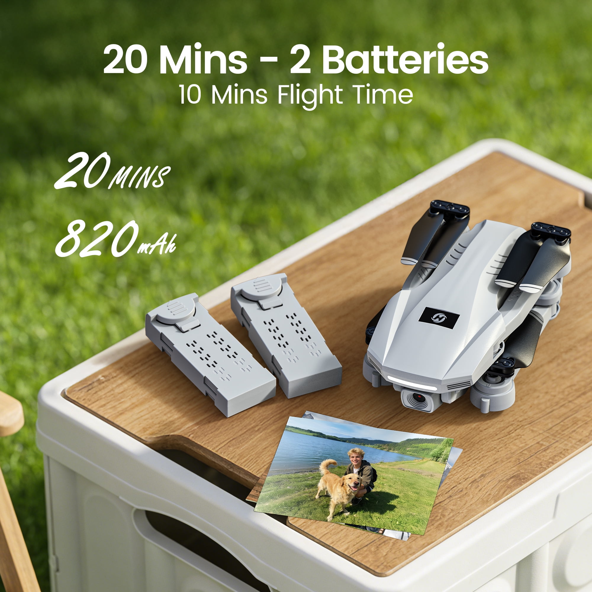 Relax, this drone delivers an exhilarating experience! With just a simple press, you’ll soar effortlessly into the skies. Weighing a mere 0.21 lb, the HS130 boasts a lightweight design that allows for easy portability and takeoff wherever your adventures take you. Equipped with a 1080P HD camera, the HS130 offers manual adjustment for stable shooting, ensuring you capture intricate details with ease. Experience true FPV flying as you view real-time images and videos on your mobile device through its WiFi FPV real-time transmission function. The HS130 also serves as your personal drone training companion. Its one-key takeoff function simplifies launch and landing, while the Headless Mode eliminates the need to distinguish directions for effortless flight. Additionally, its three flight speeds cater to individual preferences, enabling high-speed maneuvers or 360° rolls at the touch of a button, providing a unique and thrilling flight experience. Say goodbye to worries of mid-flight battery depletion – the HS130 comes equipped with two batteries, offering up to 20 minutes of uninterrupted flight. When power levels are low, a beep alerts you, ensuring a safe return to the ground.