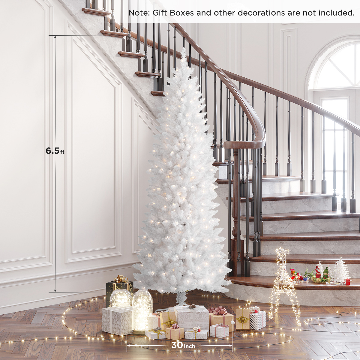 🎄HOMAKER Pre Strung 280 Lights🎄 – With UL certified, Homaker professionally hand-strung lights are evenly spaced providing an optimal warm glow. Inspire holiday cheer in your home, office, holiday party, and more with this pencil Christmas tree. 🎄Realistic-Quality Foliage🎄- Our White foliage is modelled after real tree branches that are made up of at least 62. 5% true needle foliage for outstanding realism. So, our cost-effective traditional Christmas trees are more realistic in the artificial Christmas tree’s market. 🎄Pre-Decorated Design🎄 – Made with high-quality material, the prelit slim Christmas tree inspired by nature has thick dense foliage that happily curve upwards. Pine needle foliage with classic needle for fullness, over partially flocked 752 tips for 6. 5-foot tree. 🎄Distinct Unique Appearance🎄- Light up the tree’s partially flocked branches are featuring this charming shape pine tree, beautiful and unique, gives you the classic, natural look and hold any all of your favourite ornaments, creating an elegant silhouette. 🎄Easy Assembly, Easy Self-Shaping🎄 – Hinged branches in 3 sections for easy setup . .