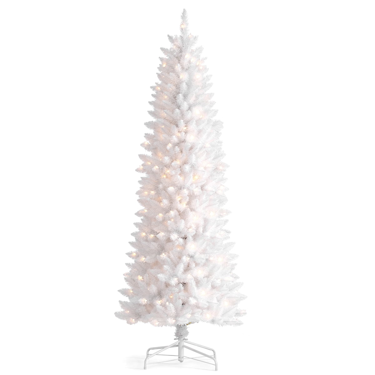 HOMAKER Prelit White Christmas Slim Tree, it’s beginning to look a lot like the holidays with this 6. 5-foot artificial tree. Bring the holiday cheer to your home without the hassle of traditional trees. Comes with 280 clear lights. Artificial spruce branches and a hinged design make it perfect for years of use. Simply fluff up the branches and enjoy plenty of space for ornaments and decorations to get a truly holly-jolly feel. We cannot ship to po box, Hawaii, Alaska, US Protectorates, APO/FPO addresses.