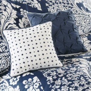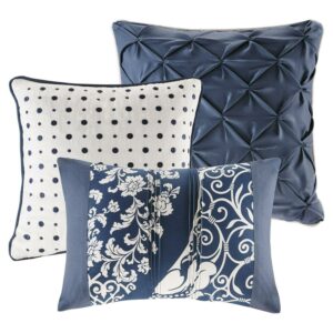 Home Essence Adela 7 Piece Cotton Printed Comforter Set, Indigo, Queen