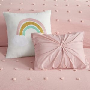 Home Essence Kelsey Cotton Jacquard Pink Pom Pom 4 Piece Comforter Set, Twin