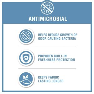 – Antimicrobial treatment helps reduce the growth of odor causing bacteria and keeps fabric lasting longer