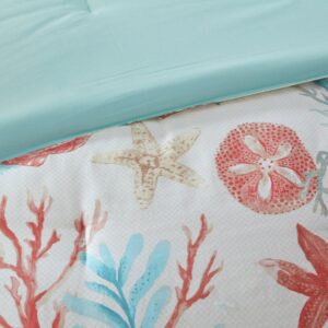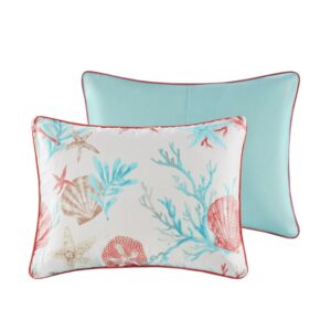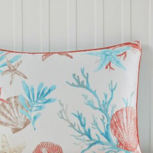 For a vibrant coastal update to your bedroom, the Home Essence Ocean View 7PC Cotton Sateen Printed Comforter Bedding Set is perfect for you! This cotton comforter and shams feature a starfish and coral motif in vivid colors to brighten your space. The solid reverse adds a splash of color to complement the coastal design. Three decorative pillows with embroidery and fabric manipulation add dimension to your top of bed, while a solid bed skirt adds the finishing touch. This bedding set is also OEKO-TEX certified, meaning it does not contain any harmful substances or chemicals to ensure quality comfort and wellness.