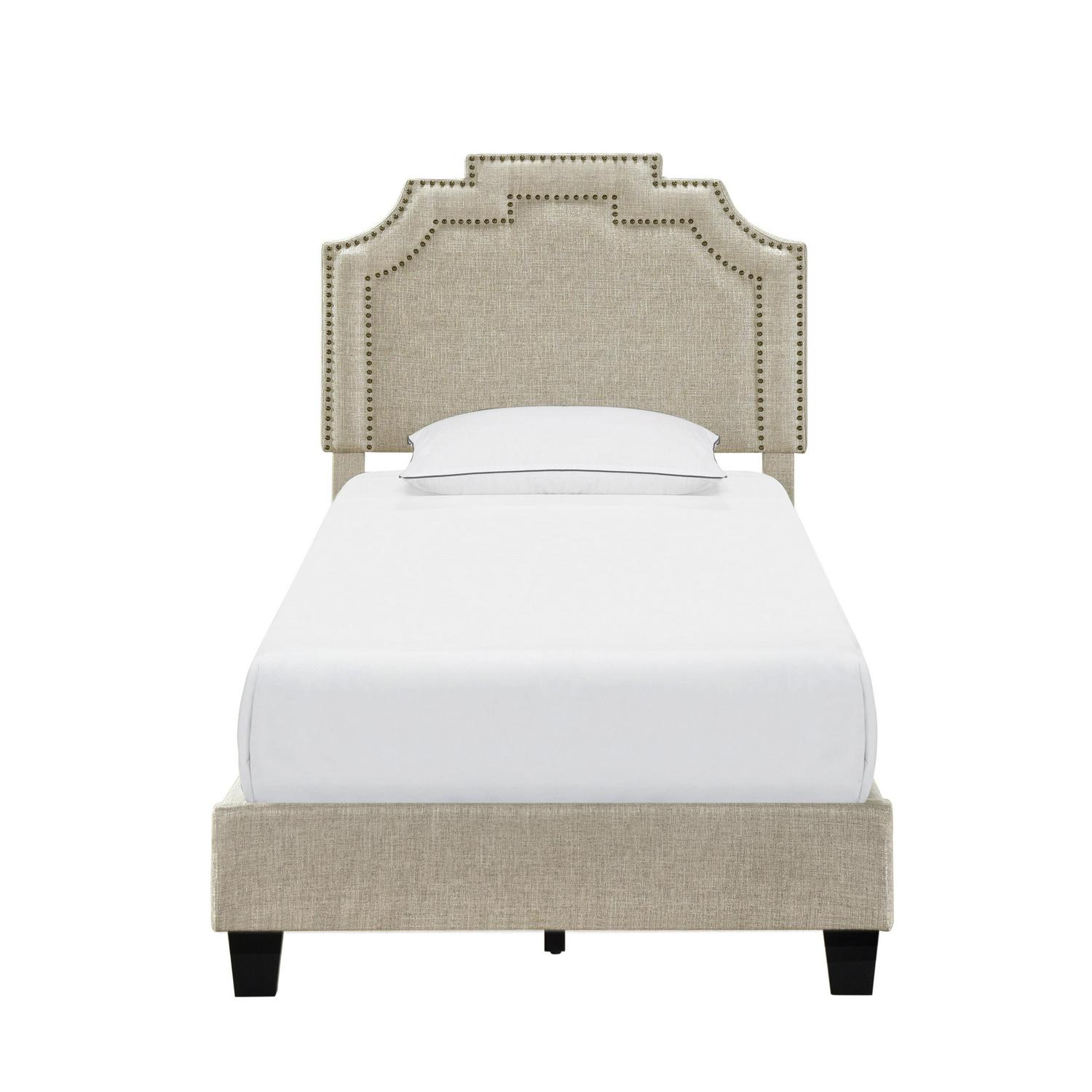 Home Meridian Shaped Twin All-In-One Upholstered Bed in Linen