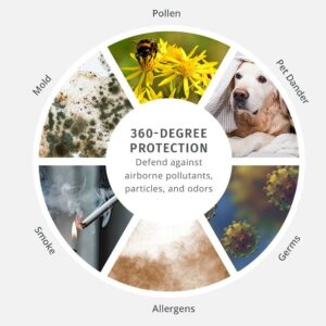 – 360 Degree HEPA-Type Filter Removes Up To 99% Of Airborne Allergens As Small As .3 Microns