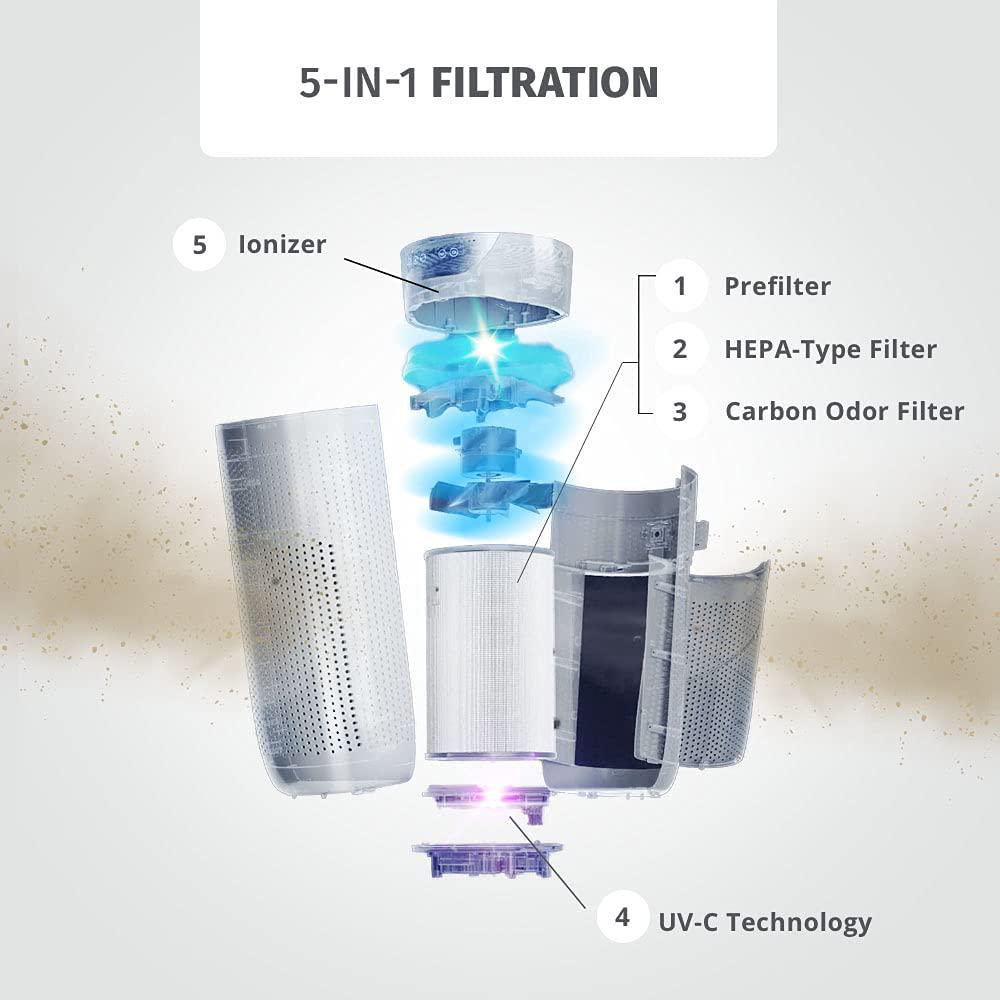 - Filter Type: Activated Carbon, Ultraviolet, HEPA