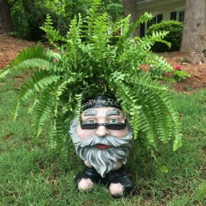 – Combines both a fun, unique statue with a functional planter. Drop a 4″ pot or directly plant- drain hole.