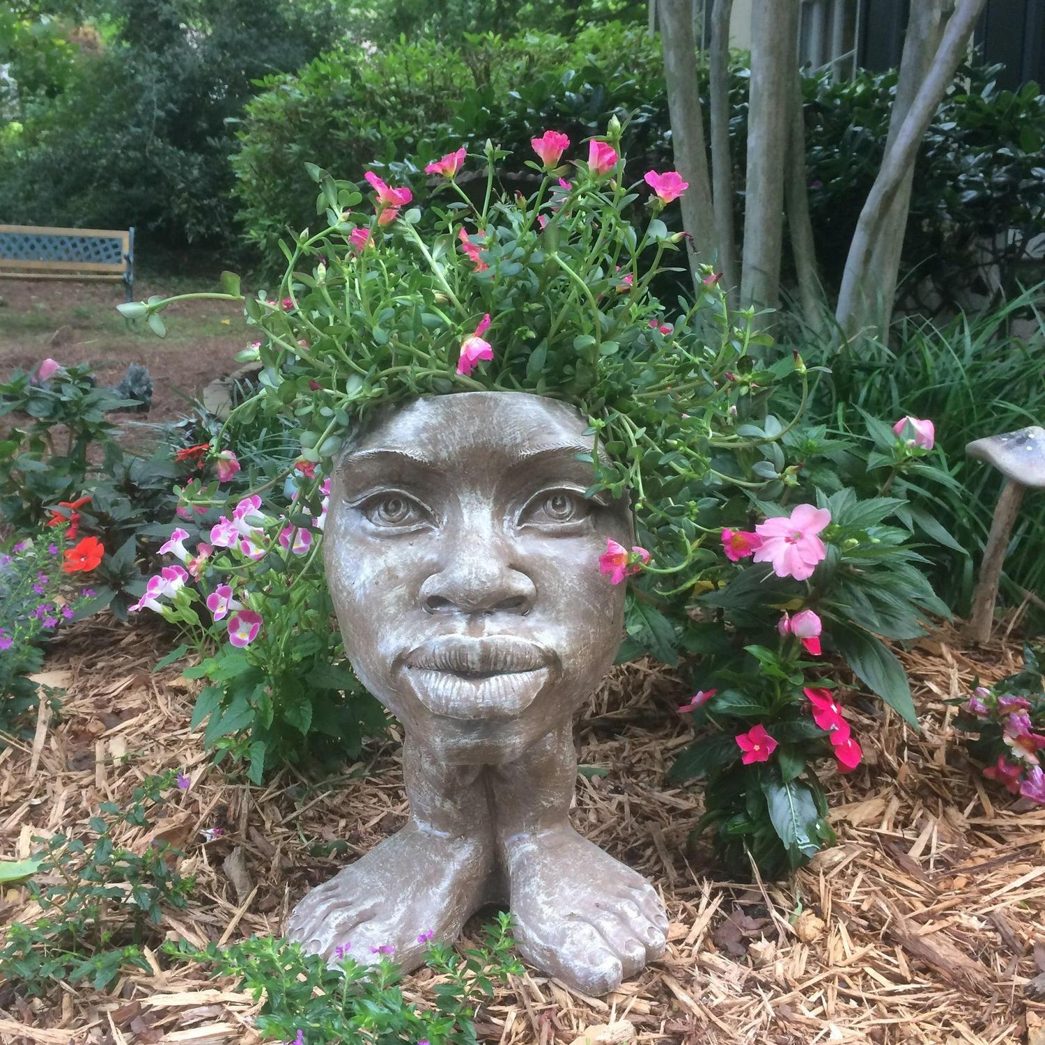 - Combines an unique, humorous statue with a functional planter
