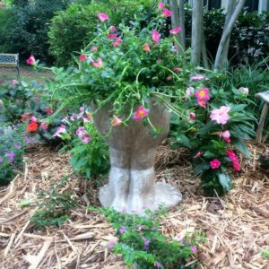 – Combines an unique, humorous statue with a functional planter.