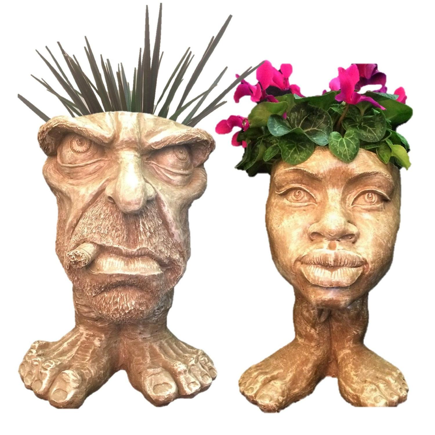 Homestyles Stone Wash Uncle Carmine and Auntie Kayla the Muggly Face Humorous Statue Planter Pot