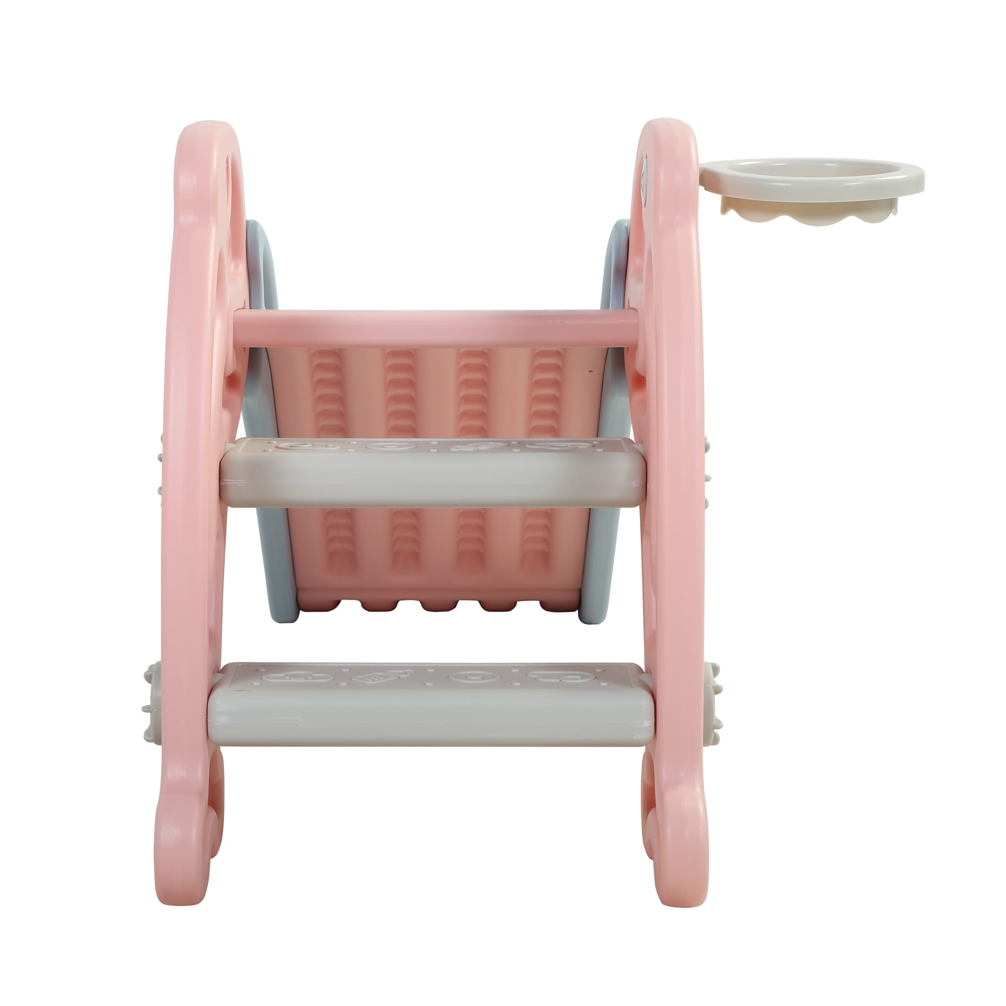 Hommoo Toys,3 in 1 Kids Climber and Slide, Toddler Play Set with Basketball Hoop and Ball for Boys Girls, Pink