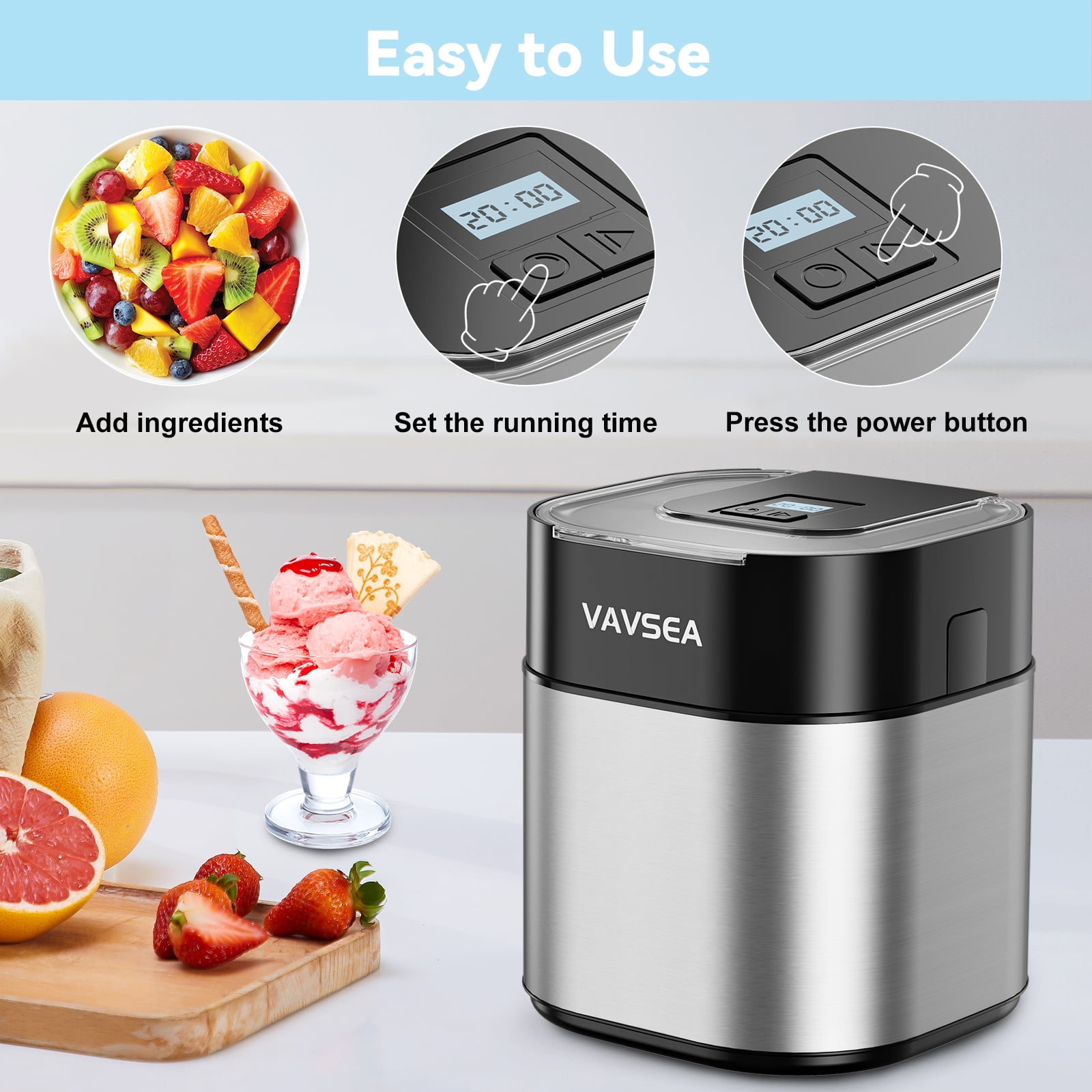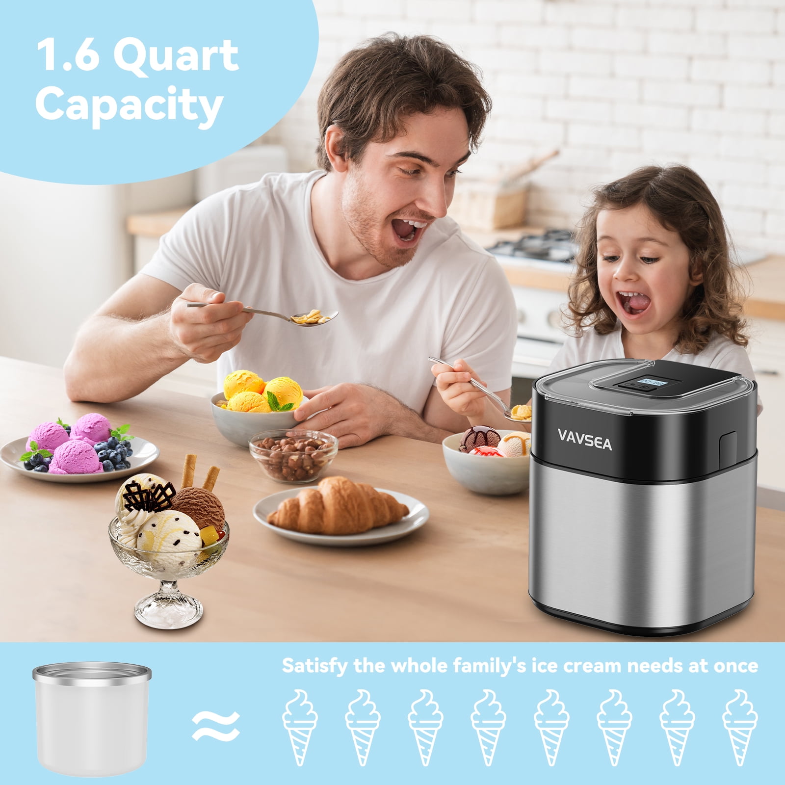 VAVSEA Ice Cream Maker, Ice Cream Machine with LCD, Gifts for family