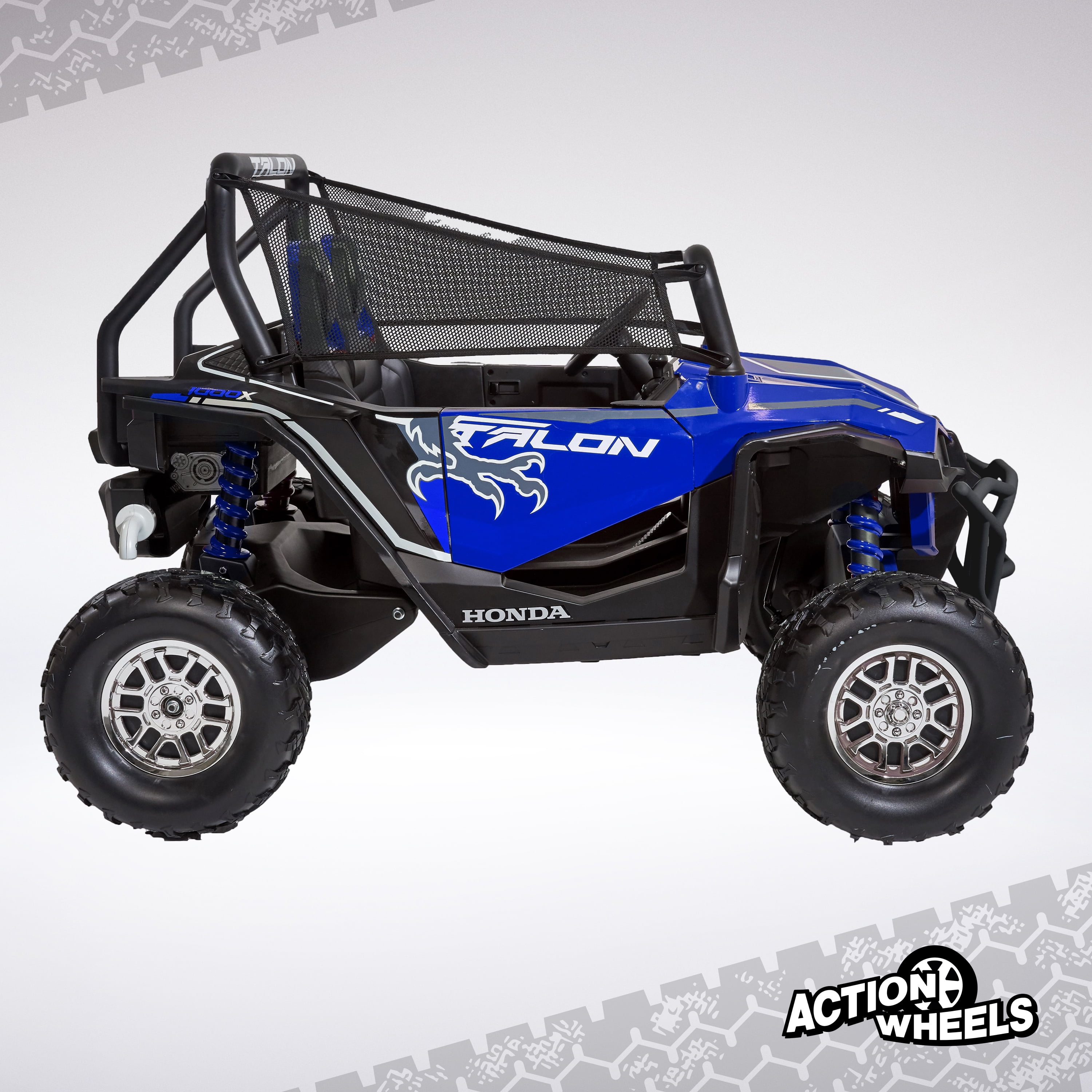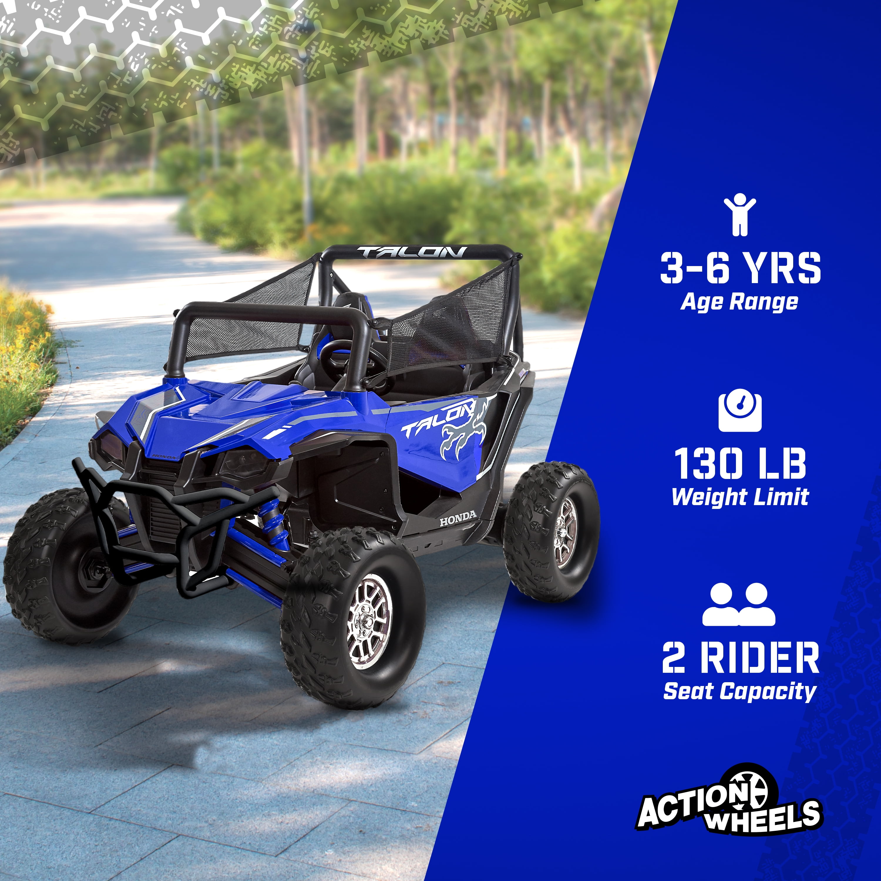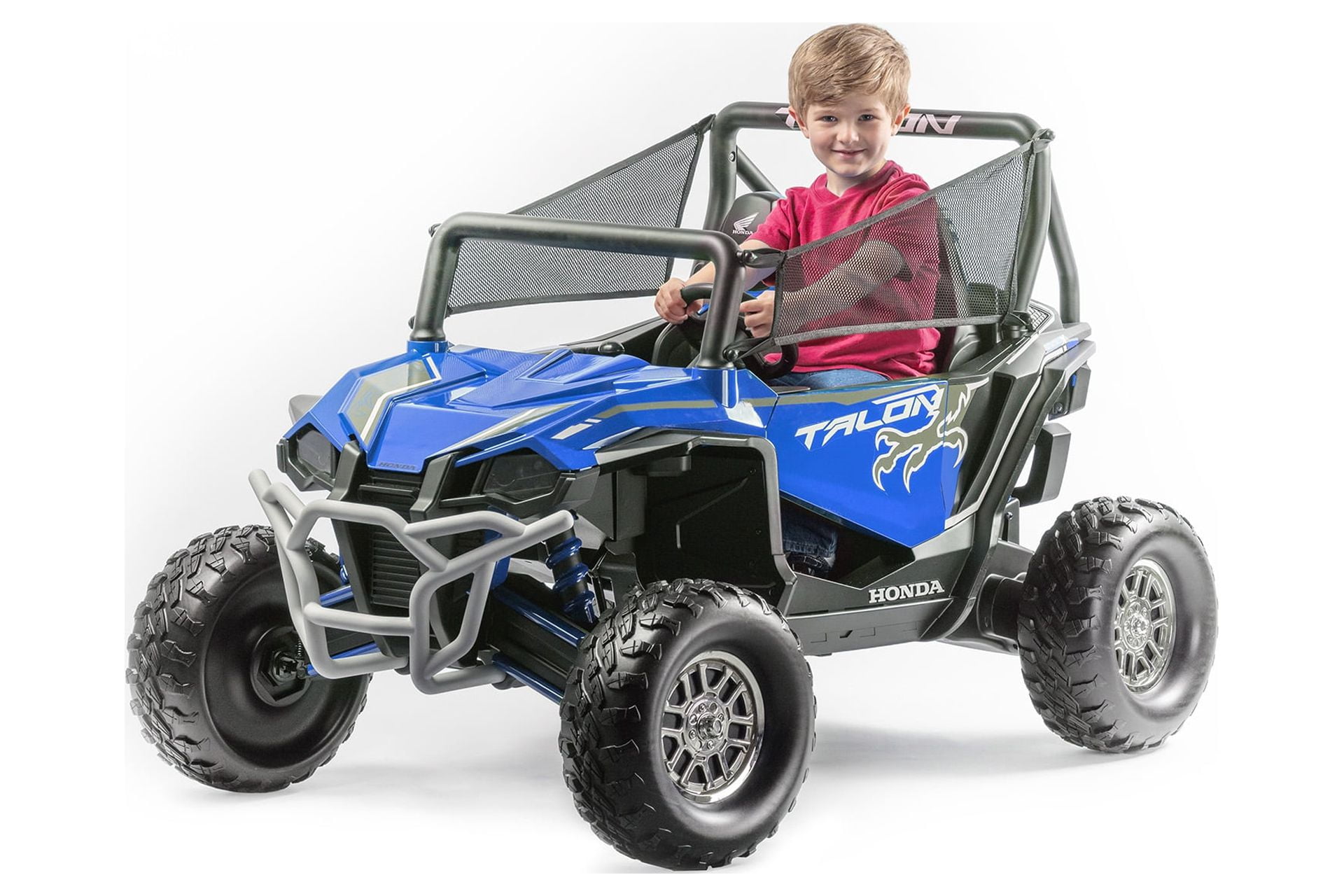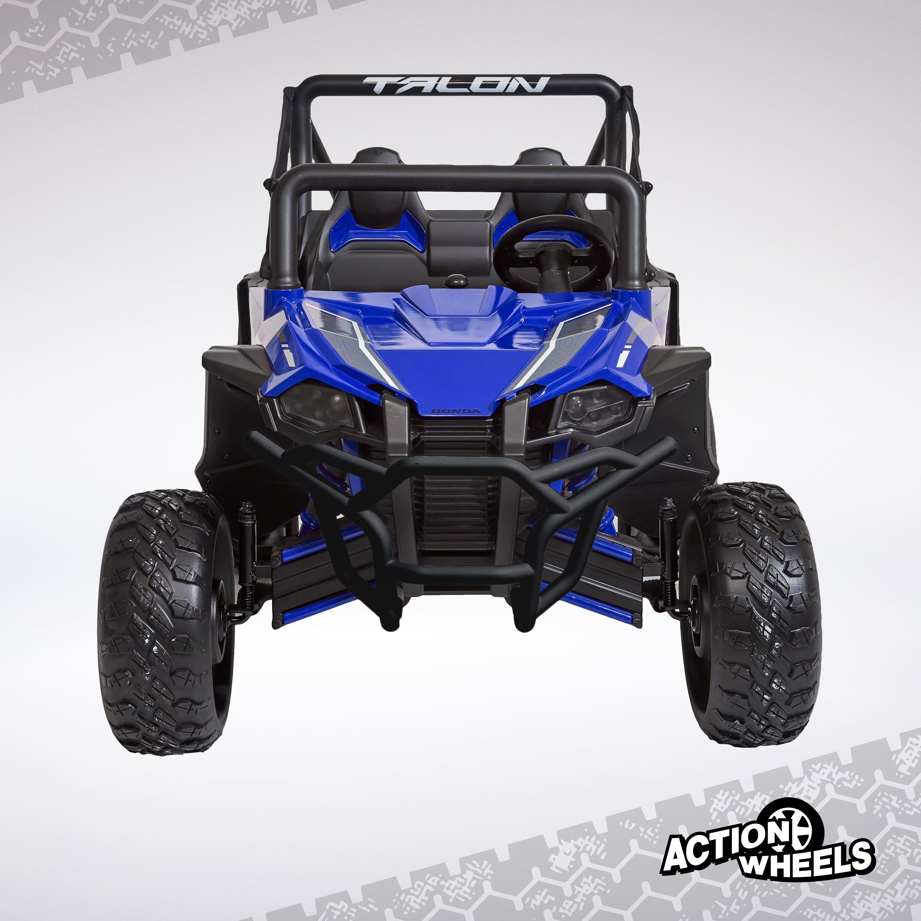 12V HONDA TALON SXS Authentic Startup sound and working horn Working headlights Front and rear suspension Fully functioning doors Forward and reverse with a max speed of 5 mph