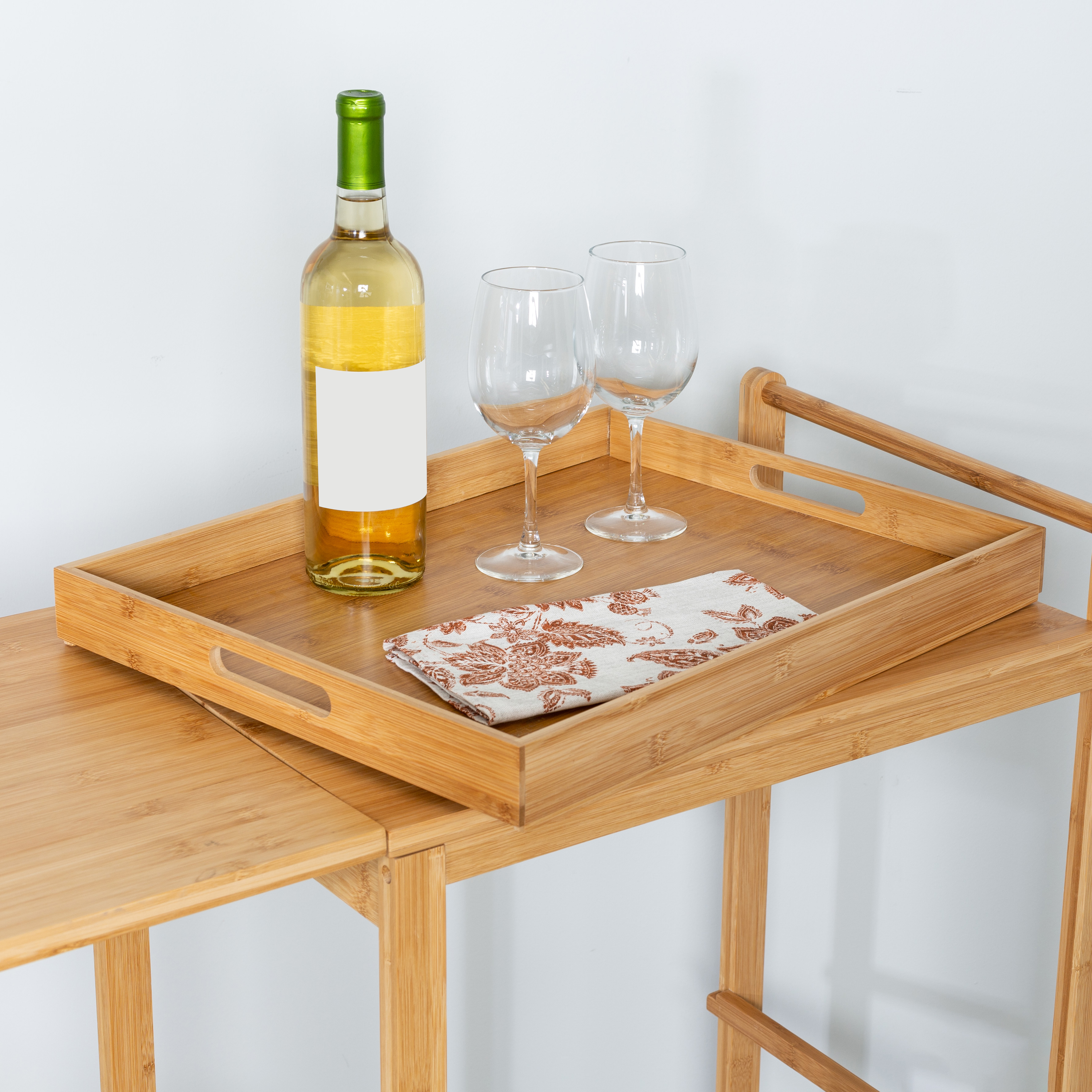Honey-Can-Do 3-Tier Bamboo Rolling Kitchen Cart with Drop-Leaf and Removable Tray, Natural
