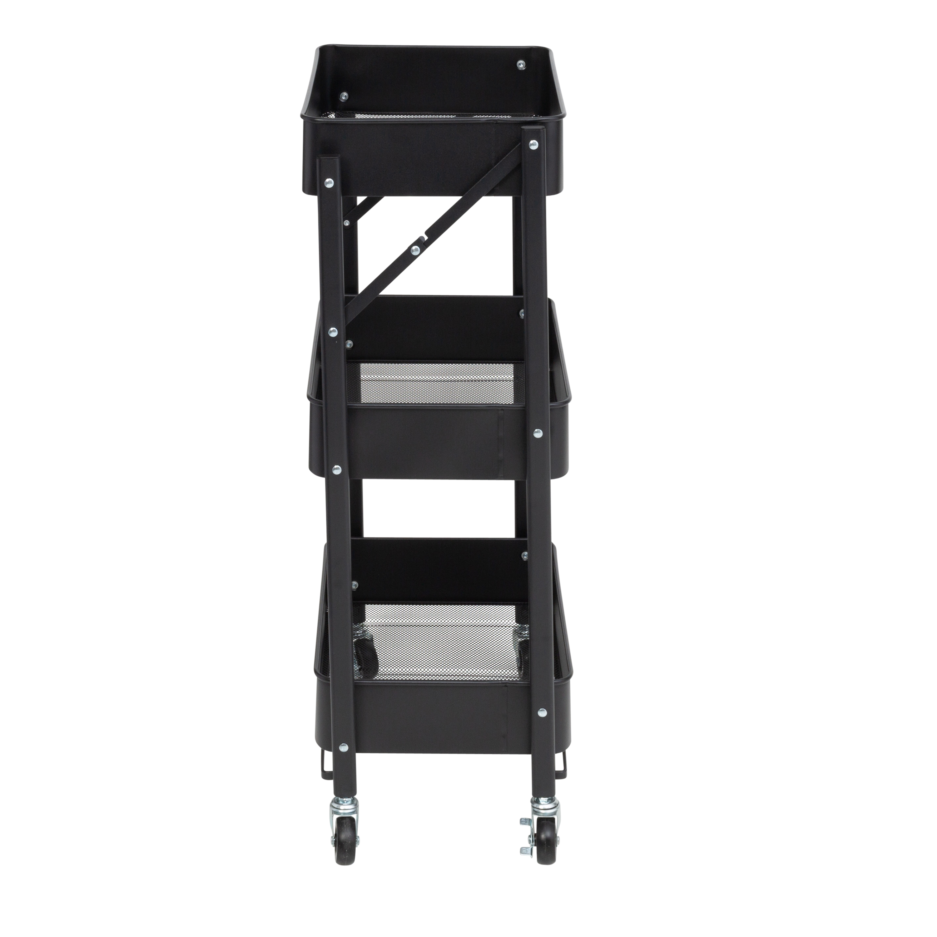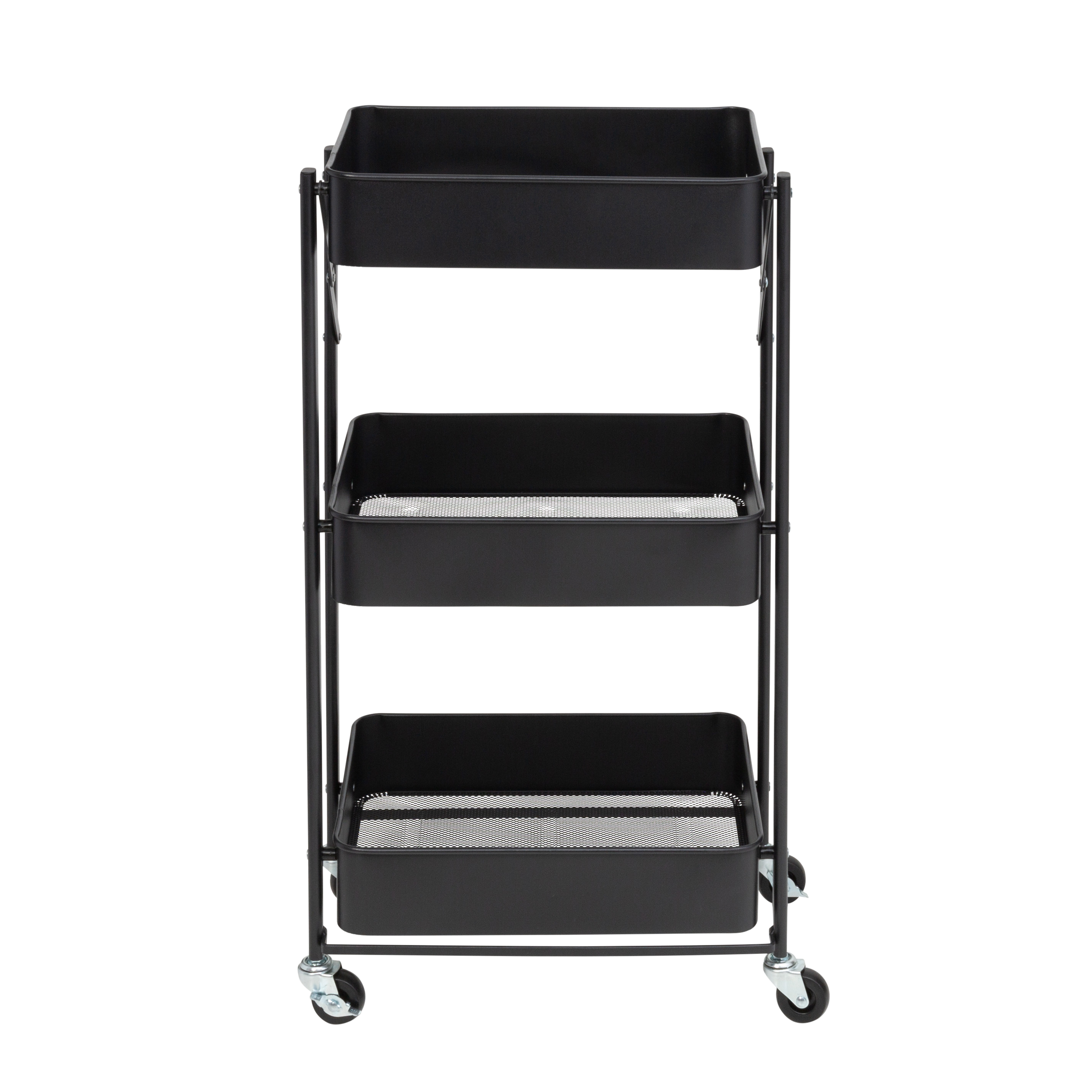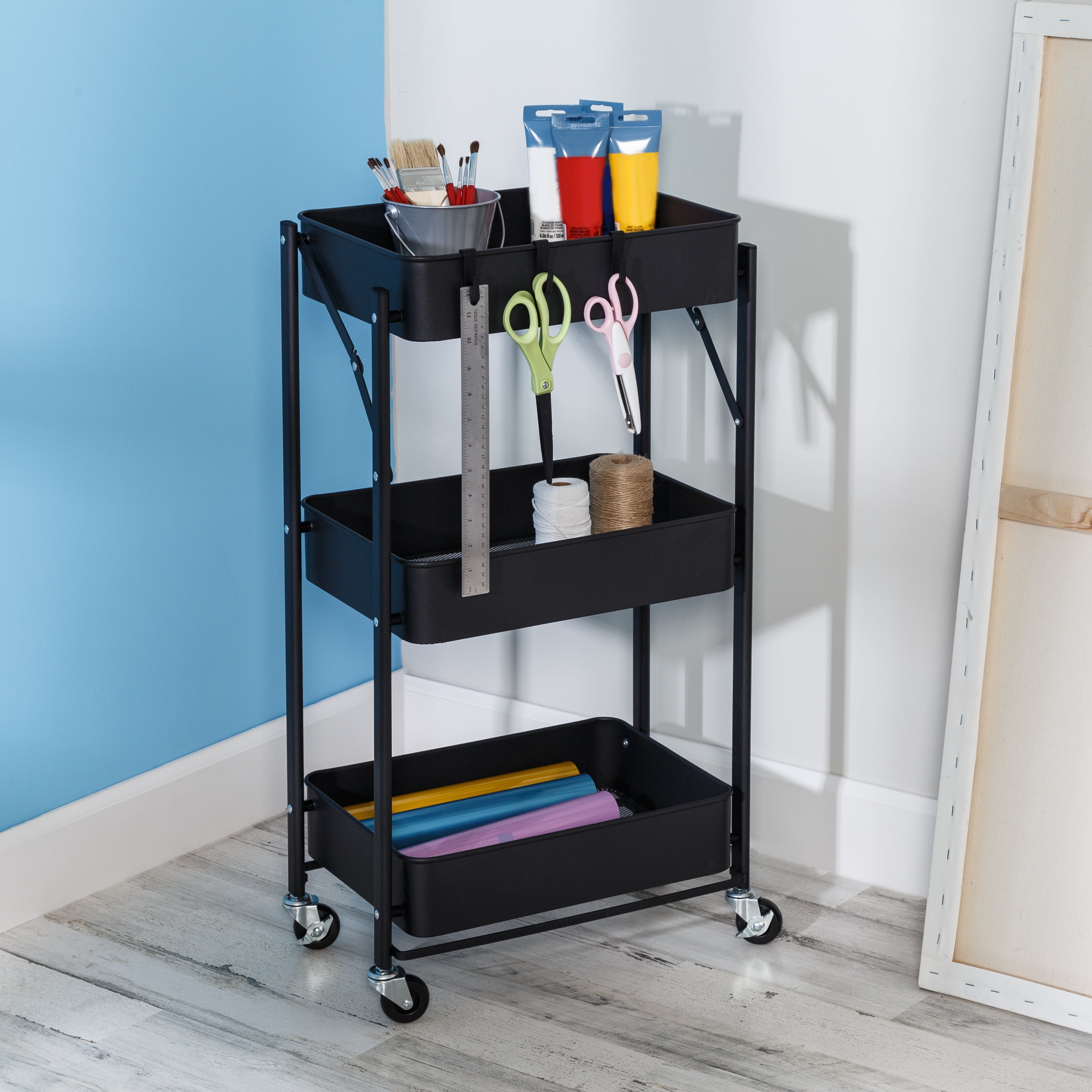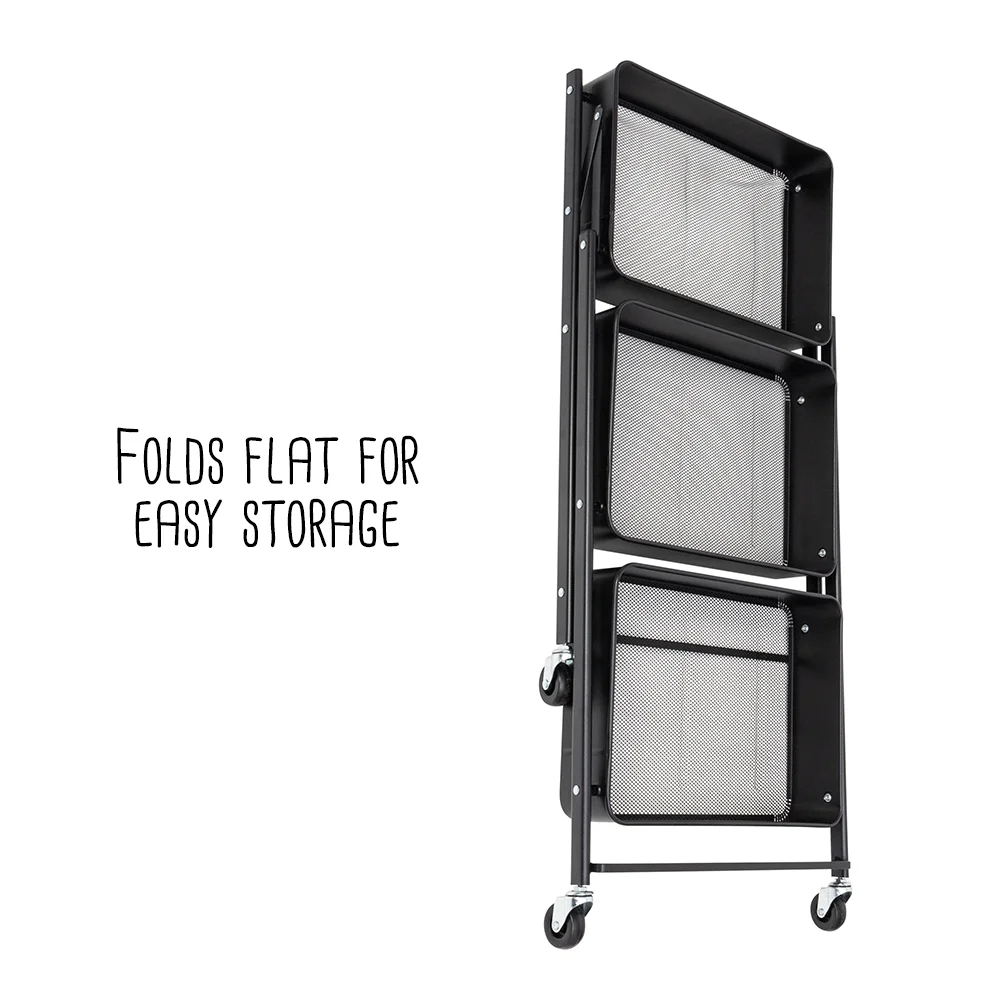 Honey Can Do 3-Tier Rolling Metal Folding Storage Cart with Lockable Wheels, Black