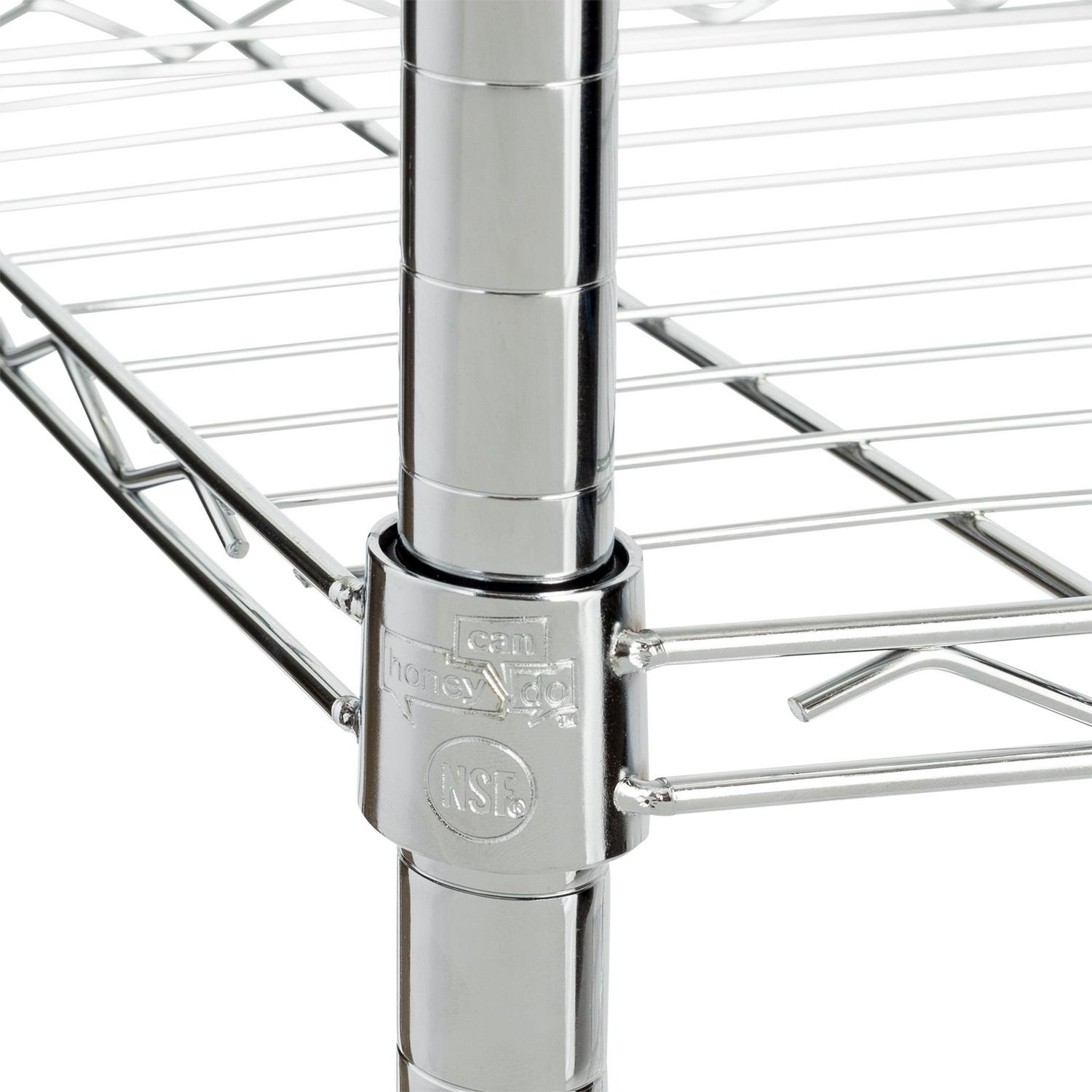 - Chrome storage shelves ideal for closet, pantry and more