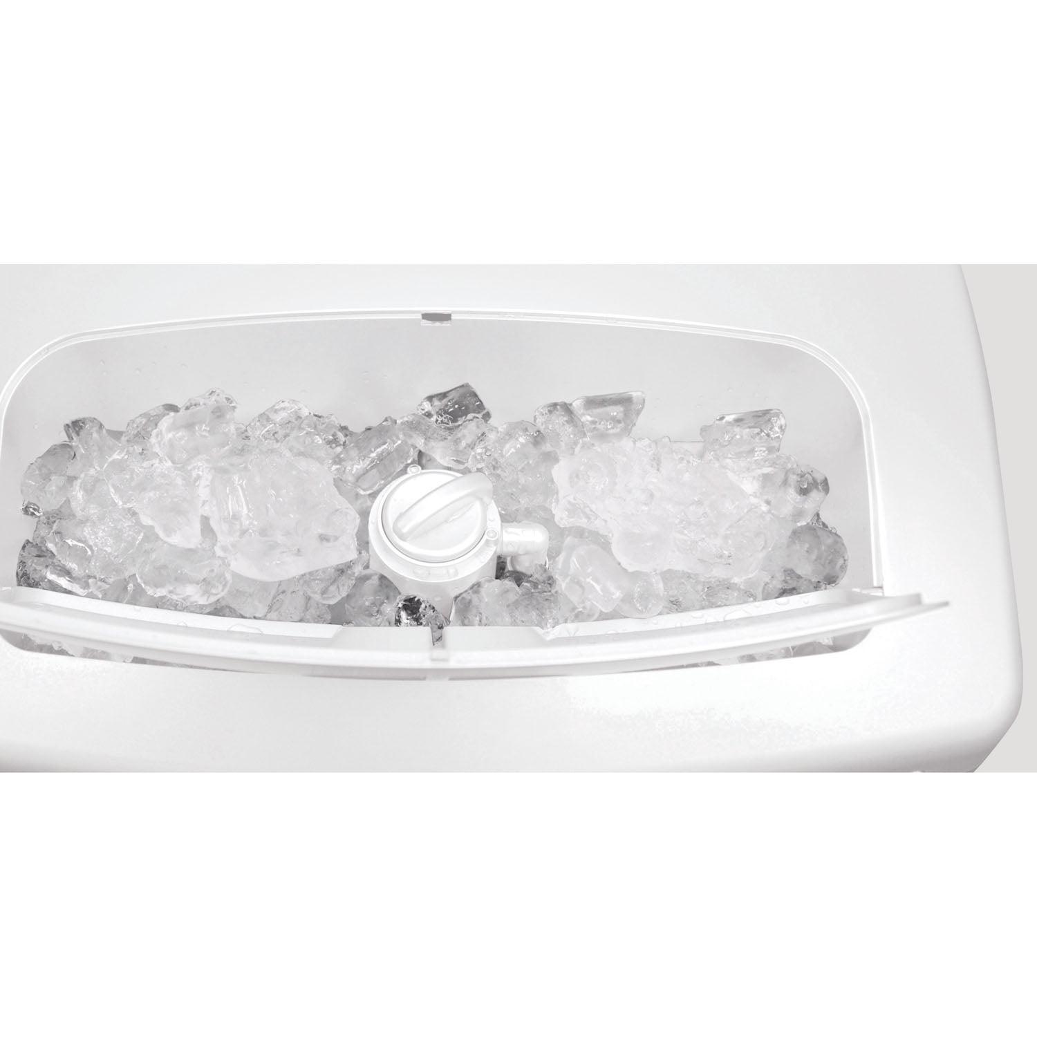- Top-loading ice compartment and 6.6-gallon water tank with low water alarm