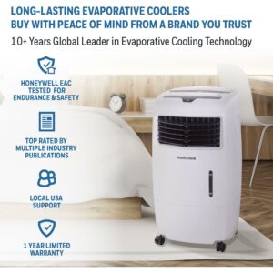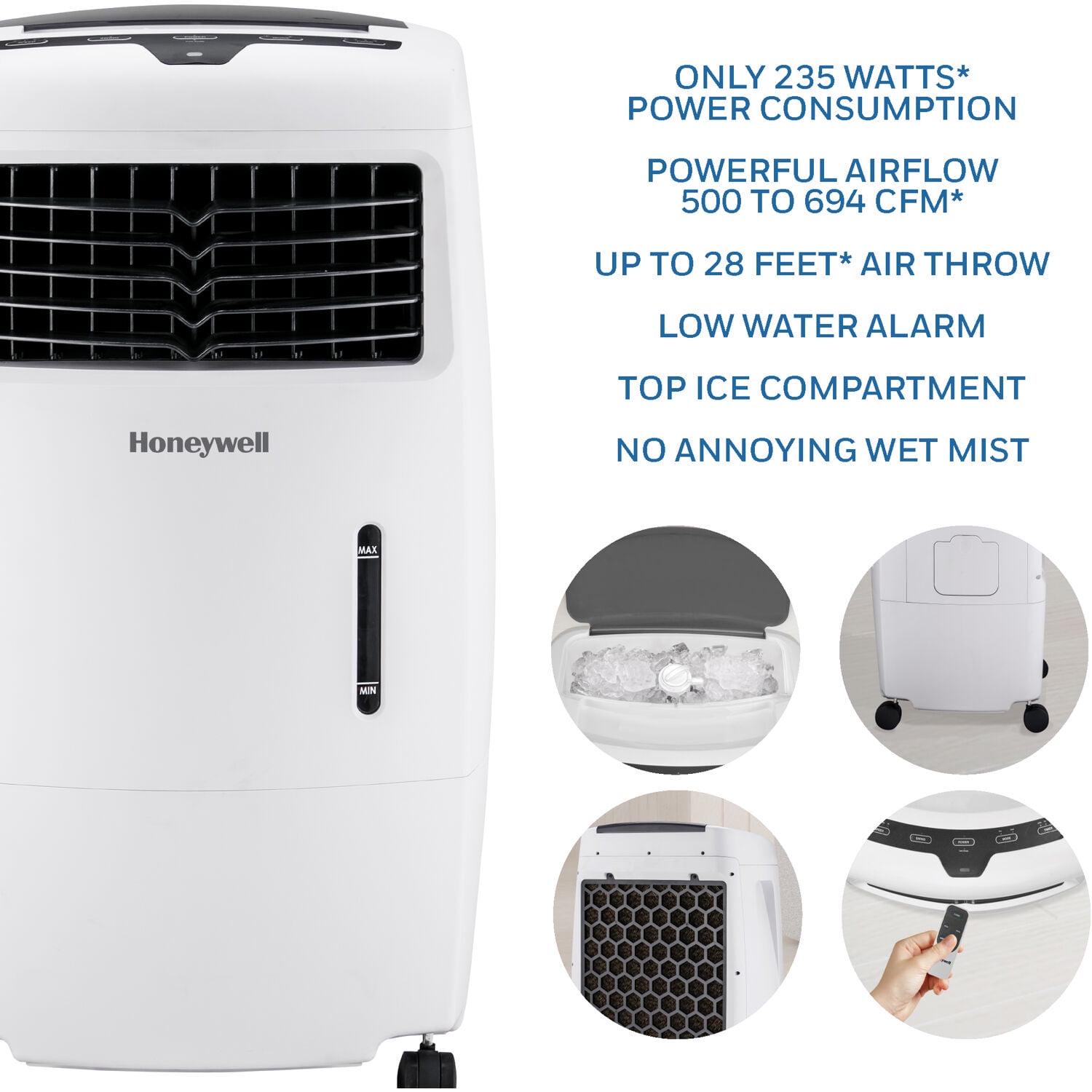 Honeywell 500-694CFM Portable Evaporative Cooler, Fan and Humidifier with Ice Compartment and Remote, CL25AE, White