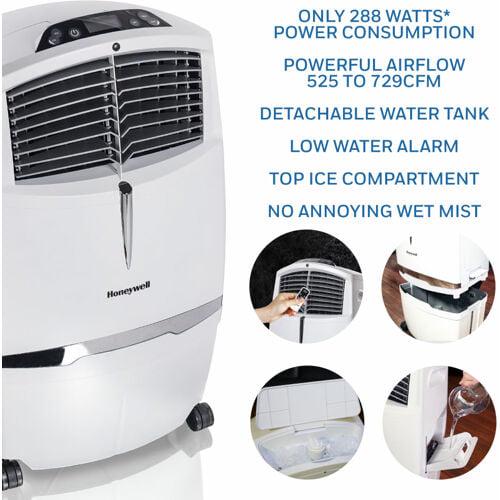 Honeywell 525-729CFM Portable Evaporative Cooler, Fan and Humidifier with Ice Compartment and Remote, CL30XCWW, White