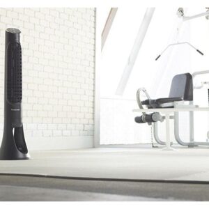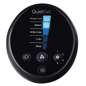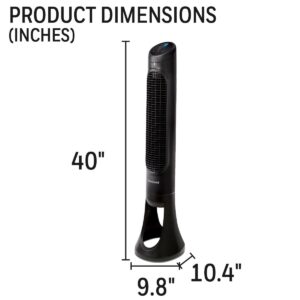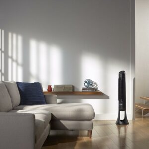 Enjoy a cool breeze in every room with the Honeywell 40″ Quiet Set Tower Fan. It features five speeds that are customizable and range from sleep to power cool settings. The lights on the control panel automatically dim after 15 seconds, making it ideal for nighttime use as well. This slim tower fan has touch-button electronic controls that are easy to use and a remote-control nest. The slim design of this unit is convenient because it does not take up too much space in your home. The oscillating tower fan has a sturdy and durable base that is to easy setup, requiring no tools.