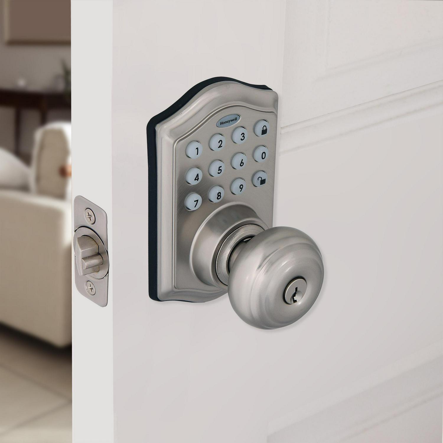 Honeywell Electronic Entry Knob Door Lock, Satin Nickel