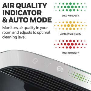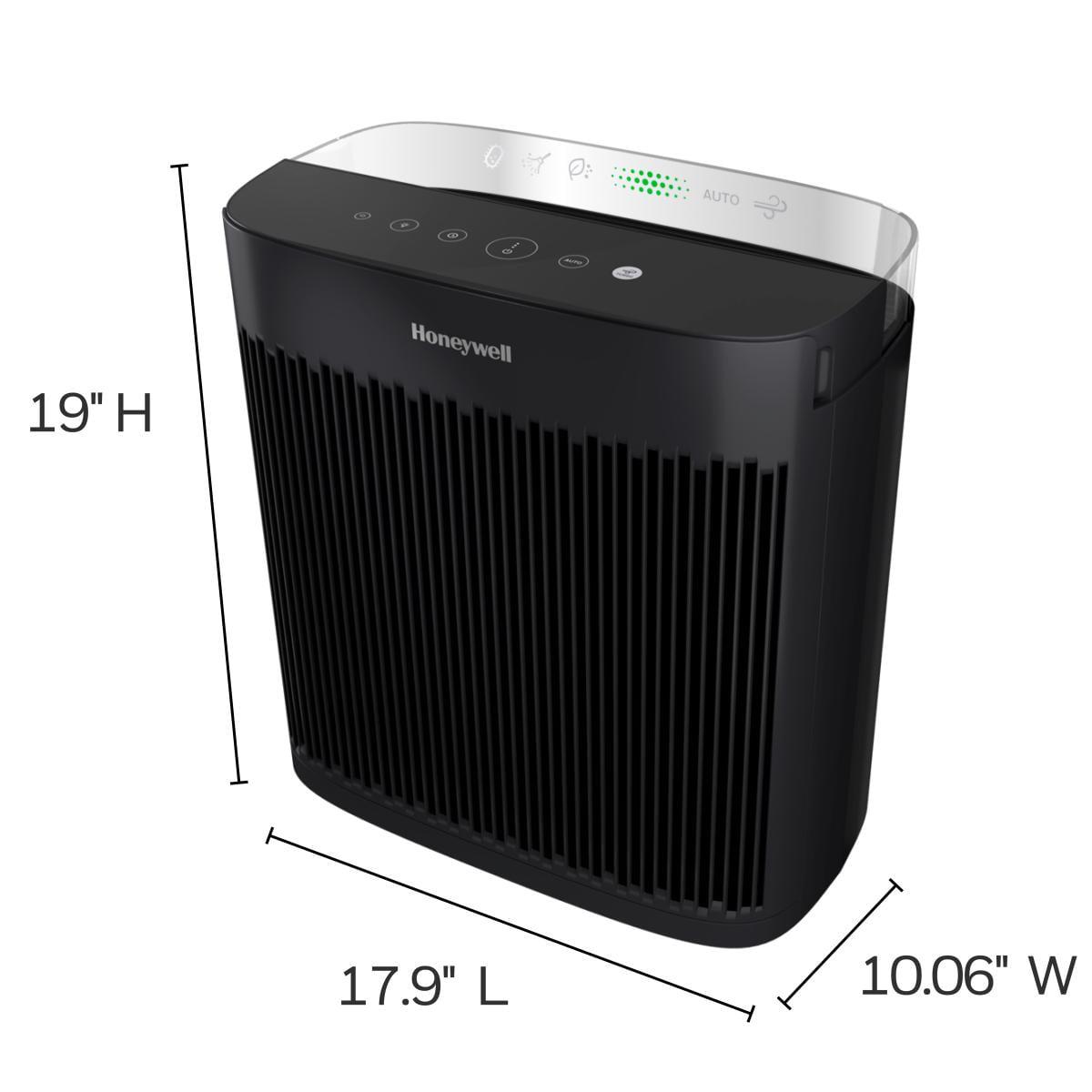This Honeywell InSight Series Air Purifier delivers powerful HEPA filtration for extra large rooms and features a Display At-a-Glance Clear Panel that provides valuable information such as air quality and device settings visible from a distance. Featuring HEPA filtration, this air purifier has been engineered to help capture up to 99.97% of the following microscopic airborne allergens and particles: dust, pollen, pet dander, dust mite debris and smoke¹. This air purifier features a VOC sensor that continuously monitors and provides real-time feedback on room indoor air quality through an easy to read, color-coded Air Quality Indicator display.