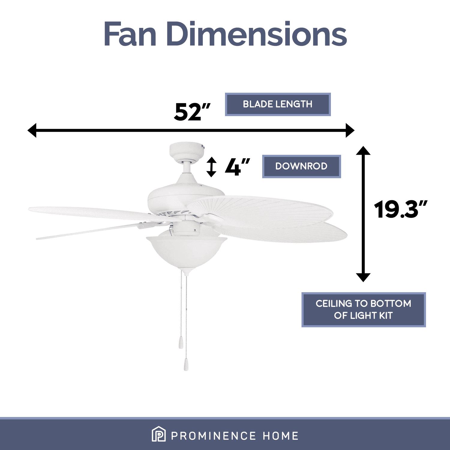 Honeywell Palm Valley 52 White Tropical Ceiling Fan with 5 Palm Blades, Pull Chain and Reverse Airflow