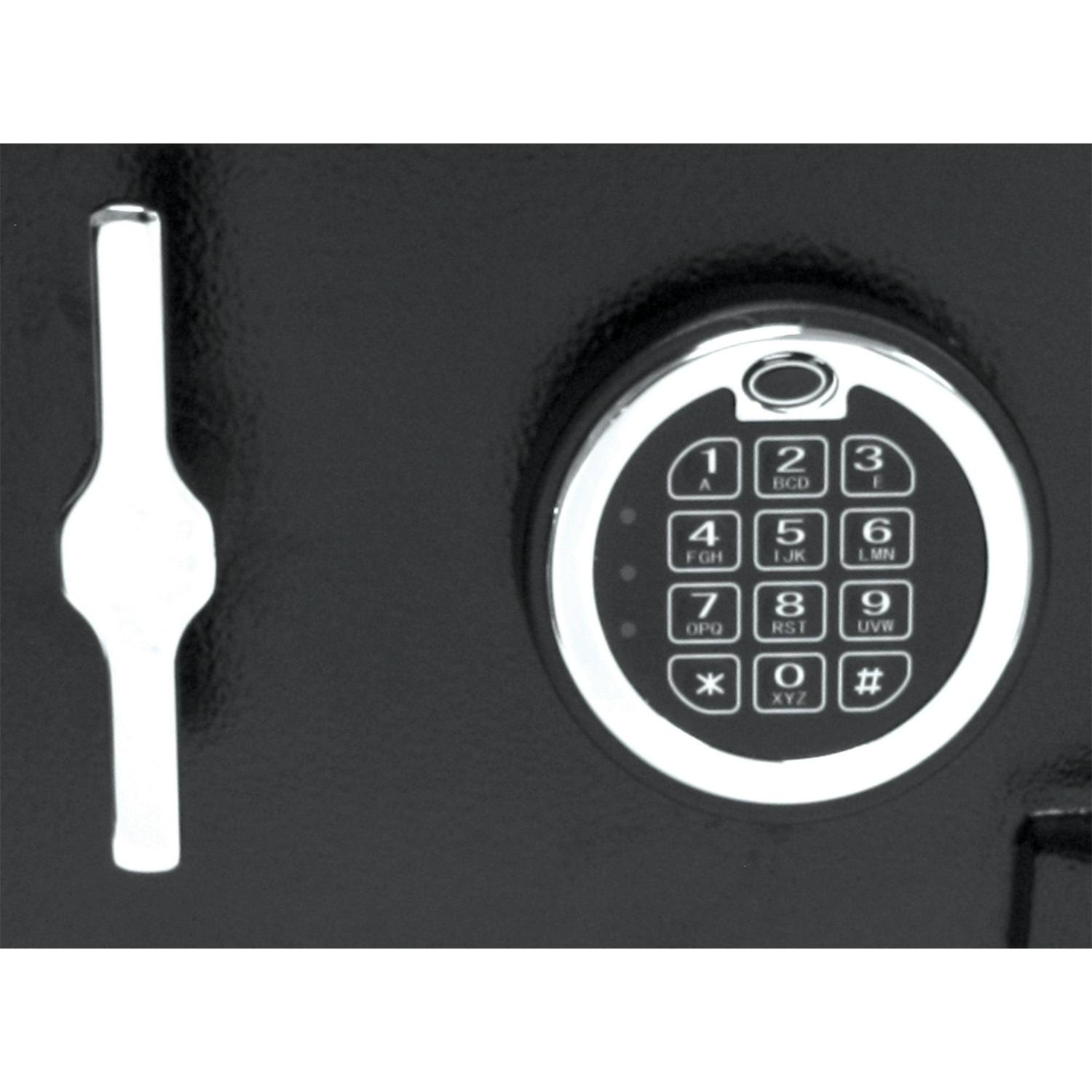 The Honeywell Safes 5912 Digital Steel Depository Security Safe is a high-quality safe that offers excellent security features. It has an easy-to-use digital lock system that is difficult for intruders to break into. The safe has three solid steel live locking bolts and a deposit door with an anti-fish baffle for added security. It provides a spacious interior with a storage capacity of 1.06 cubic feet. The safe is made of strong steel with a scratch-resistant powder coat finish. It comes with pre-drilled mounting holes and hardware for easy installation. The safe requires one 9-volt battery (not included) for operation. It is backed by a 5-year limited warranty from Honeywell. The 5912 also includes pre-drilled mounting holes and hardware. Requires one 9-volt battery, not included.