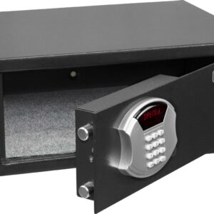 The Honeywell Safes Steel Security Safe, 1.1 Cu ft, will keep all of your important documents and valuables safe and secure. A recessed door and concealed hinges make it hard for thieves to pry open the safe. This 5105DS laptop security safe features a programmable hotel-style digital lock. Emergency override key access will help you open the safe if you forget your password. This safe is large enough to store most 17″ laptops. This Honeywell 5105DS medium low profile steel security safe features a 1.14 cubic feet interior storage capacity, a programmable hotel-style digital Lock, emergency override key access (2 keys included), LED display panel, concealed hinges and recessed door, flat bottom entryway, and rear panel to prevent prying for additional protection against theft.