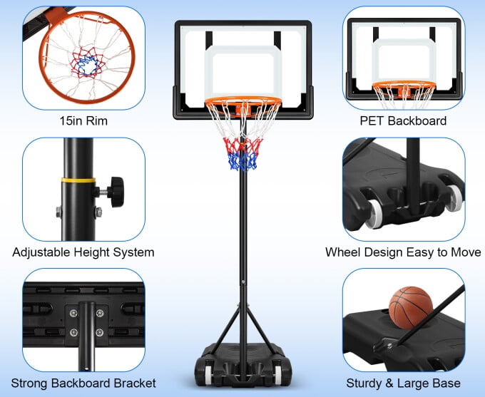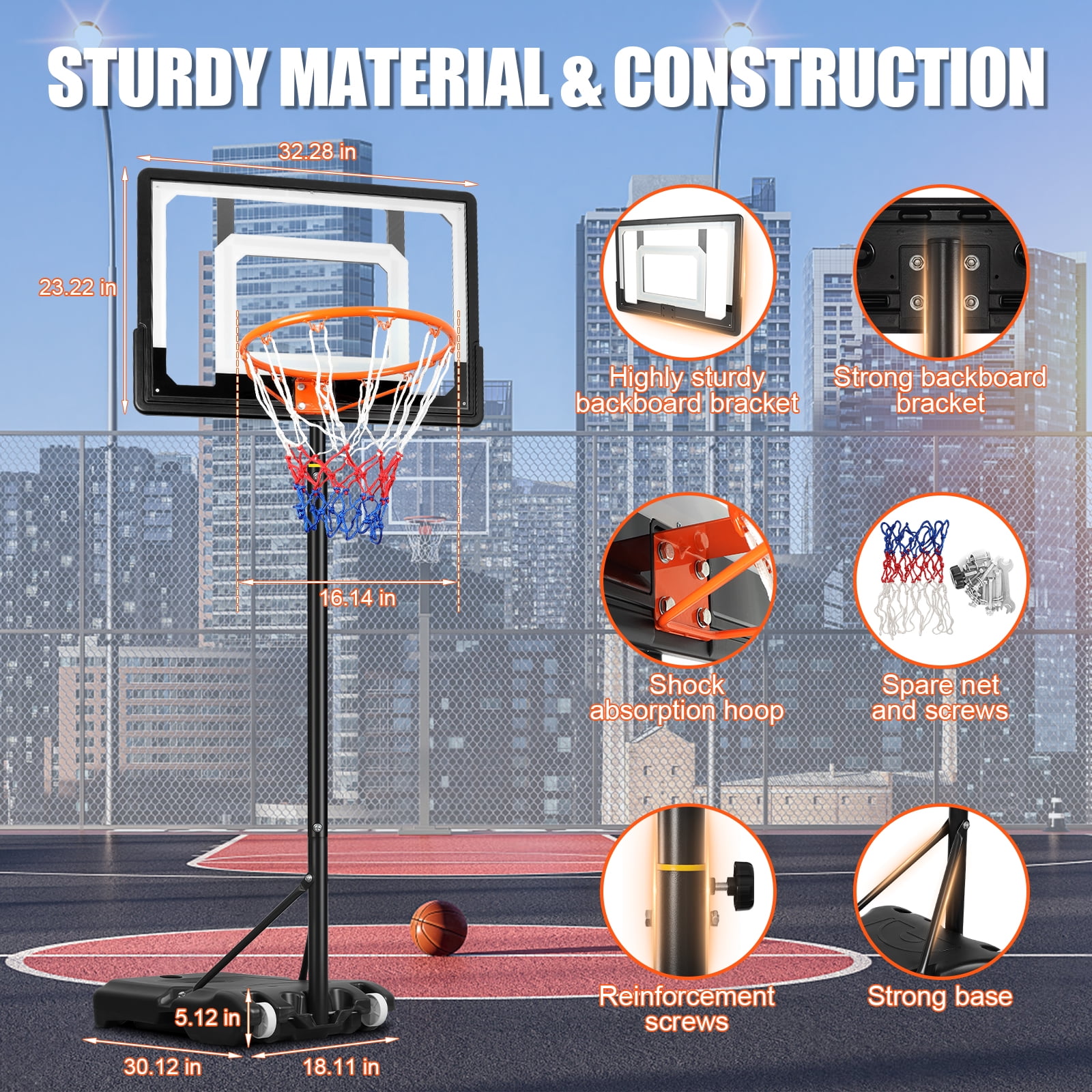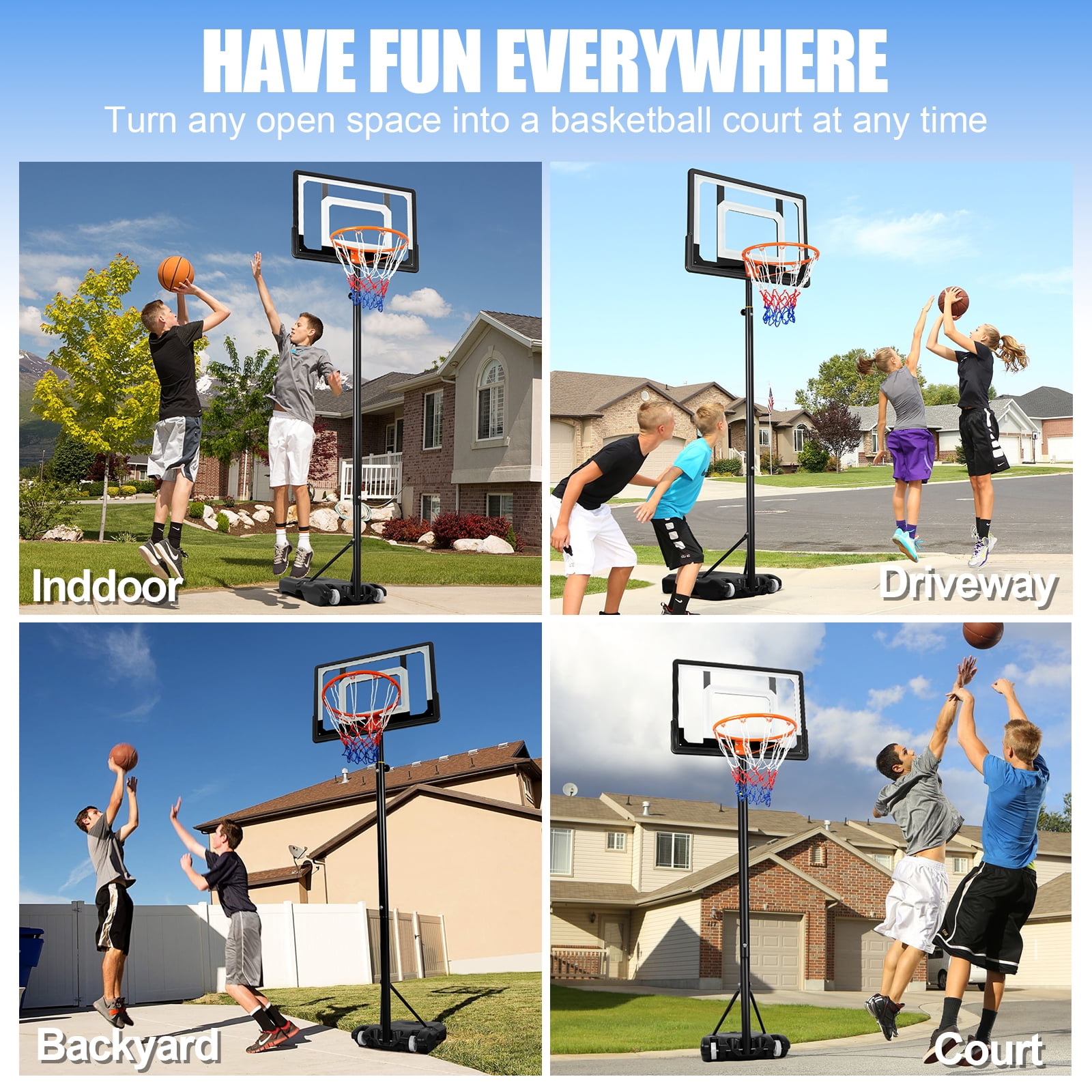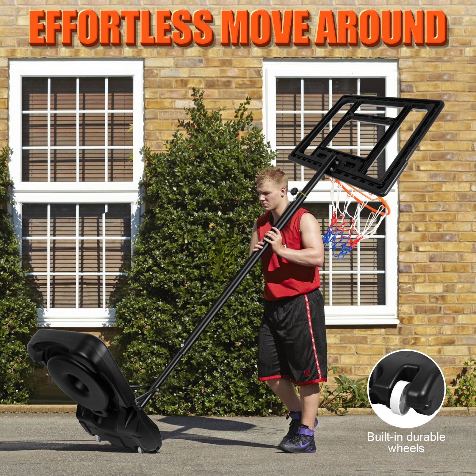 Adjustable Height: Ranges from 5 to 7 feet, making it perfect for kids and adults alike. Easy to adjust so you can grow with the game! 32-Inch Backboard: Made of high-quality, shatterproof material, this backboard offers a professional feel and durability in various weather conditions. Easy to Assemble & Move: With clear instructions, setup is a breeze. Plus, the built-in wheels make it easy to move to your desired location, so you can enjoy your basketball sessions wherever you want.